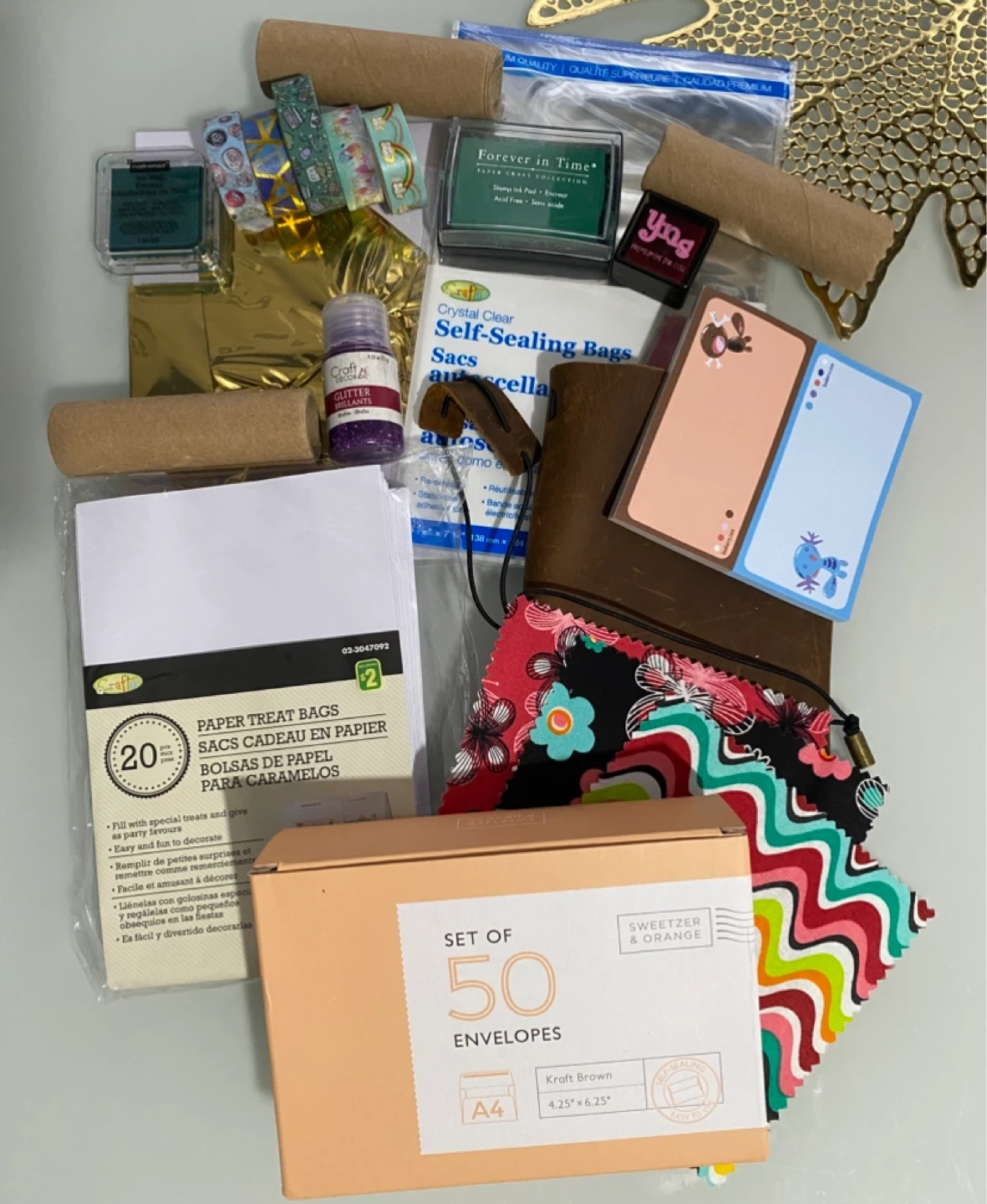 40Selling a craft supply bundle that includes a variety of items! You'll get: - 20 Craft paper treat bags - Art journal book cover - Paper Roll - A set of 50 Sweetzer & Orange Kraft Brown A4 envelopes (4.25" x 6.25") - Craft Decor glitter - Crystal Clear self-sealing bags - Forever in Time stamp ink pad - And more! Perfect for your crafting needs