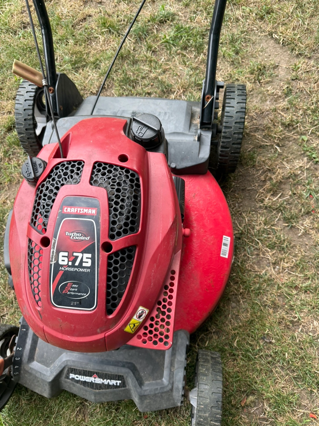 Selling a used Craftsman lawnmower with a 6.75 horsepower engine. It's in working condition and ready to help you keep your lawn looking great! It features a turbo-cooled engine and a 21-inch cutting path.