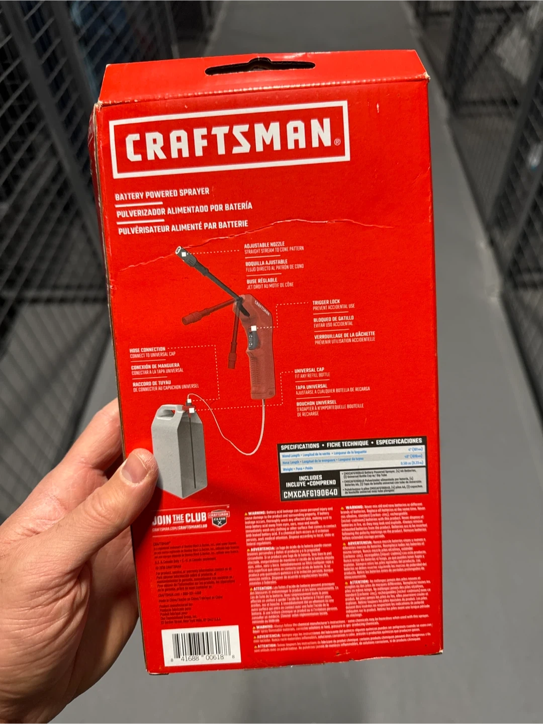 NEVER USED Selling a brand new Craftsman battery powered sprayer, still in its original box! It boasts up to 60 minutes of runtime and works with any metal bottle. It can spray up to 20 feet. The box includes an adjustable nozzle, hose connection, universal cap, and trigger lock.