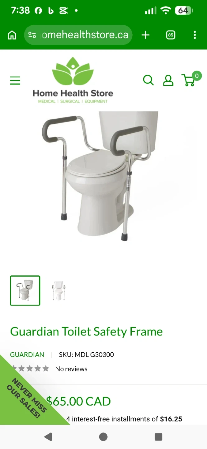 USED Guardian Toilet Safety Frame REG $65
