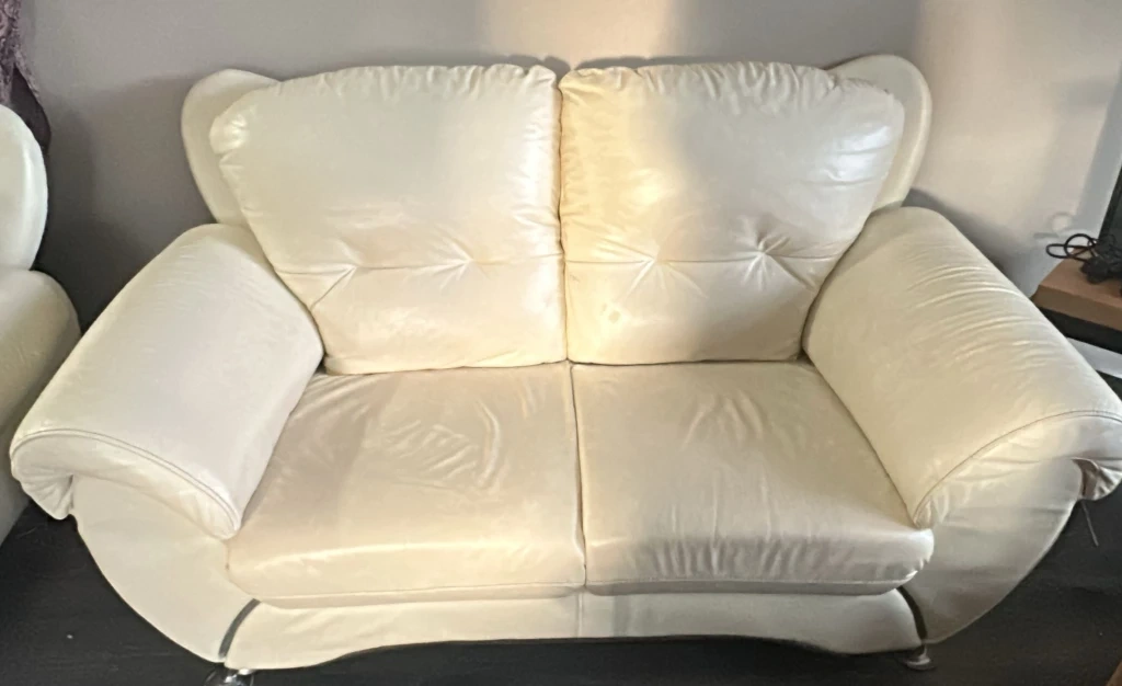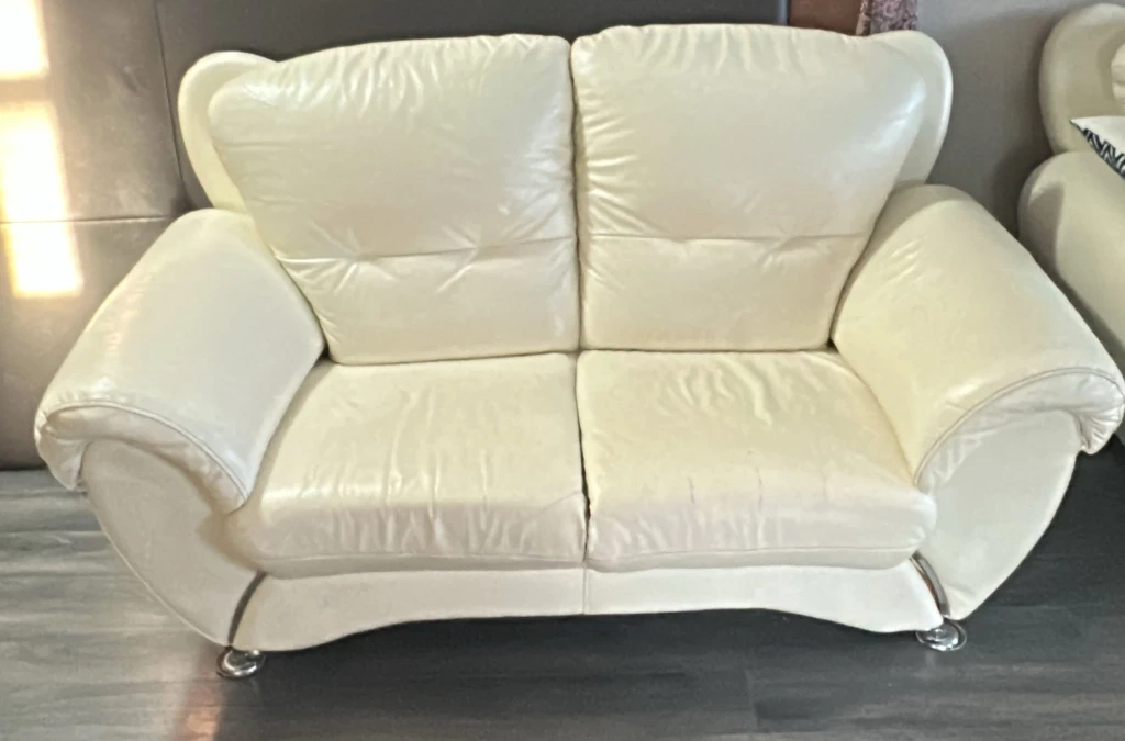 Selling 2 cream-coloured Italian leather loveseat! It's in great shape and would look lovely in any living room or den. The material is leather and it's a comfortable size for two people. It's a stylish and practical addition to your home regular wear each $200 and both $390 pickup airdrie