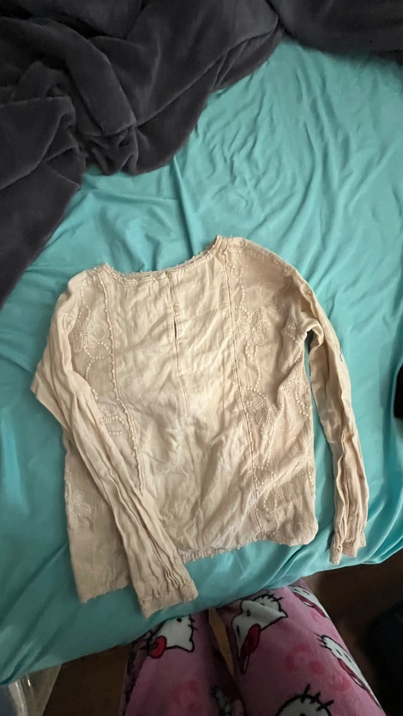 20A cute cream-coloured long sleeve blouse, perfect for layering or wearing on its own! It's in great condition and ready for a new home