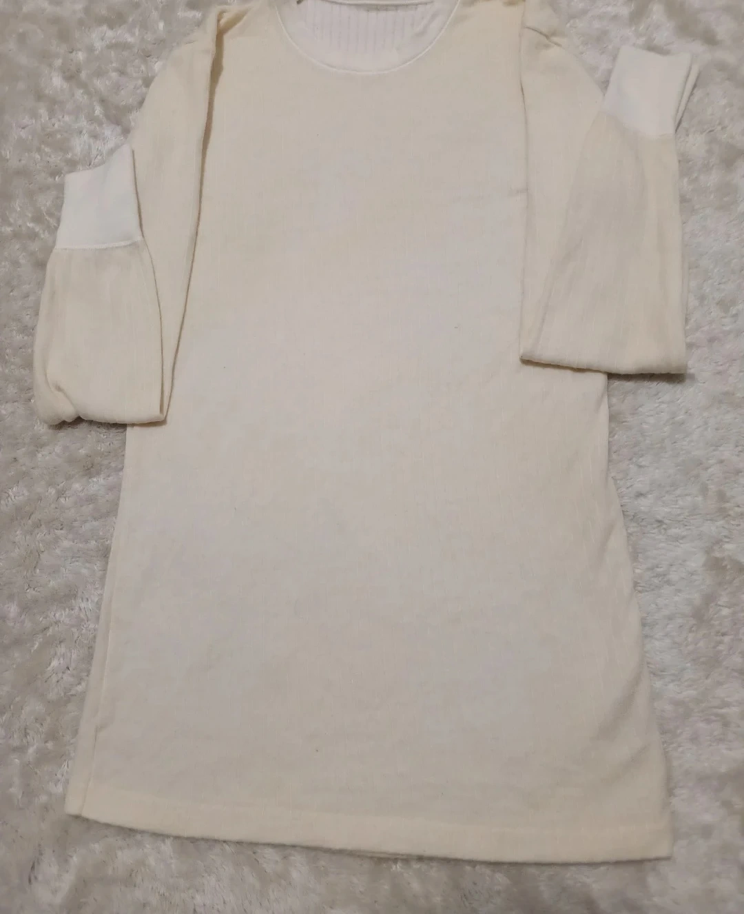 26Selling a cream-coloured long sleeve dress. It's in good condition and perfect for layering or wearing on its own. The material feels soft and comfortable, making it a great addition to your wardrobe
