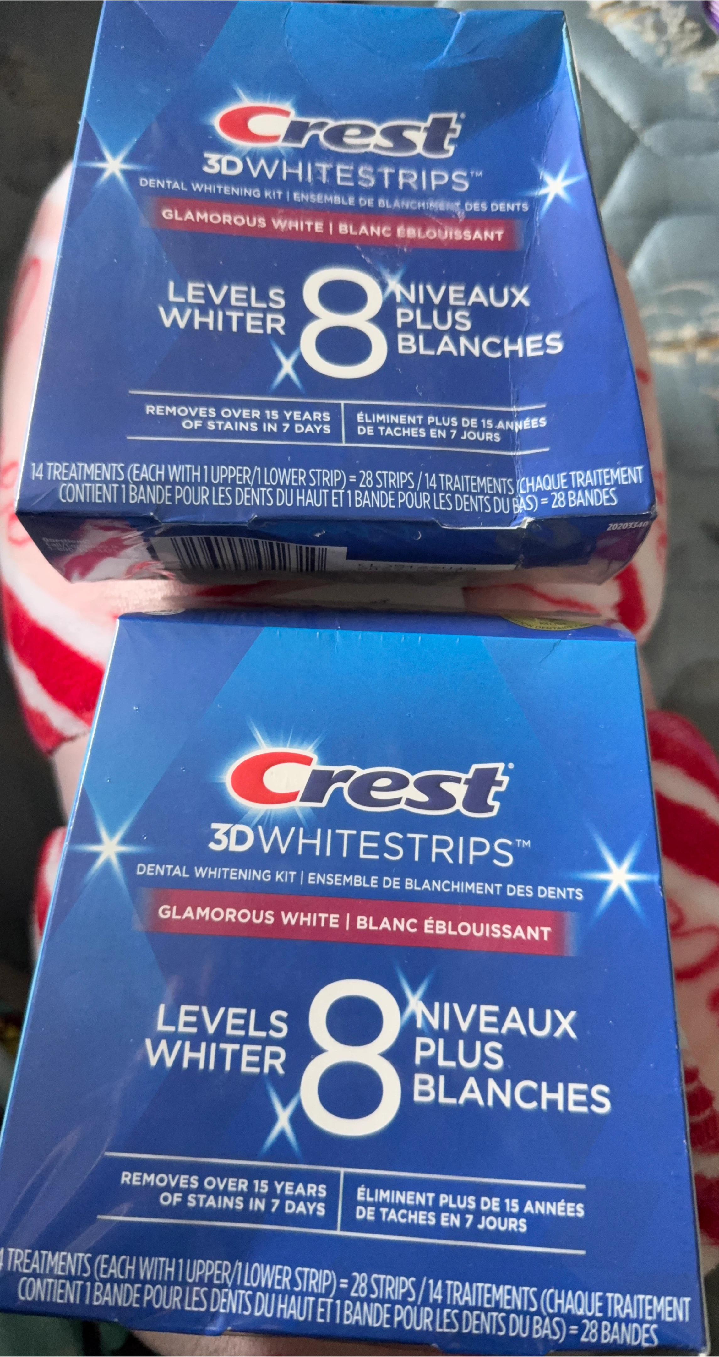 15Selling a brand new box of Crest 3D Whitestrips in Glamorous White! Each box contains 14 treatments, which equals 28 strips. Get ready to remove over 15 years of stains in just 7 days