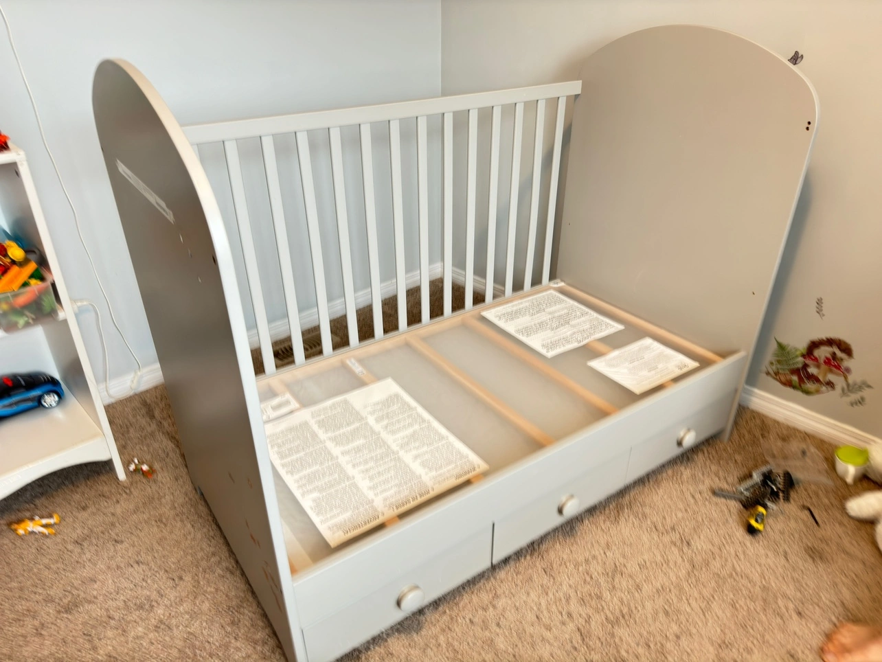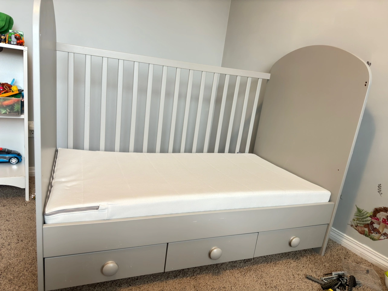 IKEA crib and mattress. Baby crib in great condition Height can be adjusted and can also be made into a toddler crib when baby is older All disassembled and ready for pick up. Pick up Beaumont