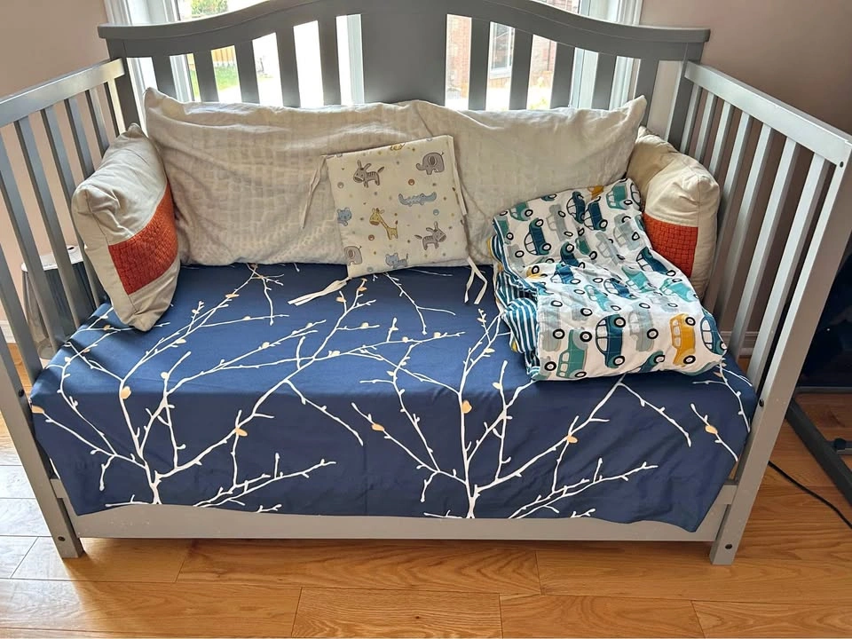 Show allWhite Baby Crib with Mattress and Bedding