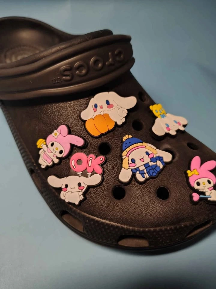 10Croc charms/ jibbitz in new condition. Contains 6 charms + 5 free paper clips. PS: The only thing for sale here are the jibbitz/charms. The shoes are not!