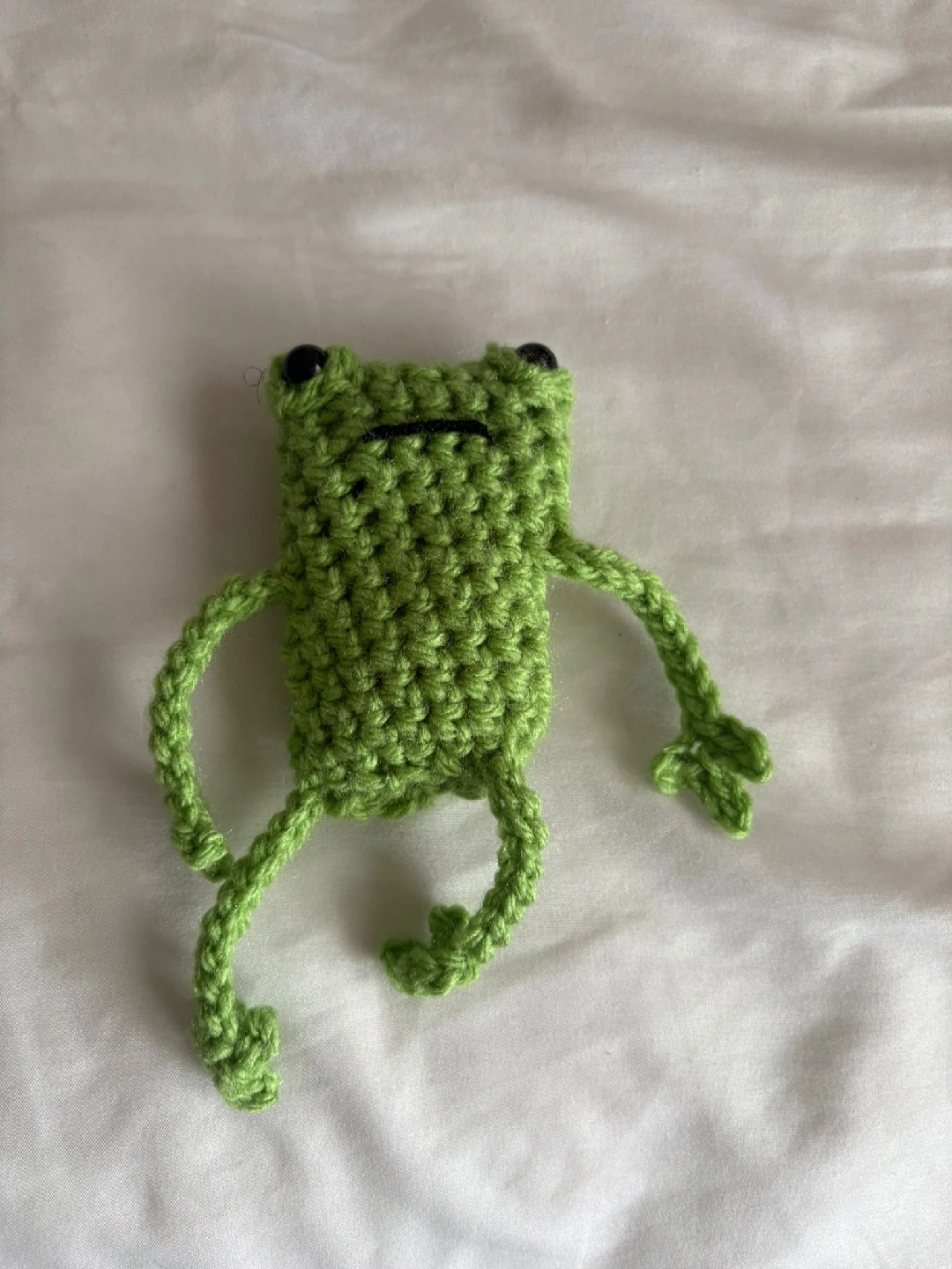 Selling a cute, handmade crochet frog! It's a bright green and in great condition. Perfect as a small gift or a charming addition to your collection. Can come in other colors