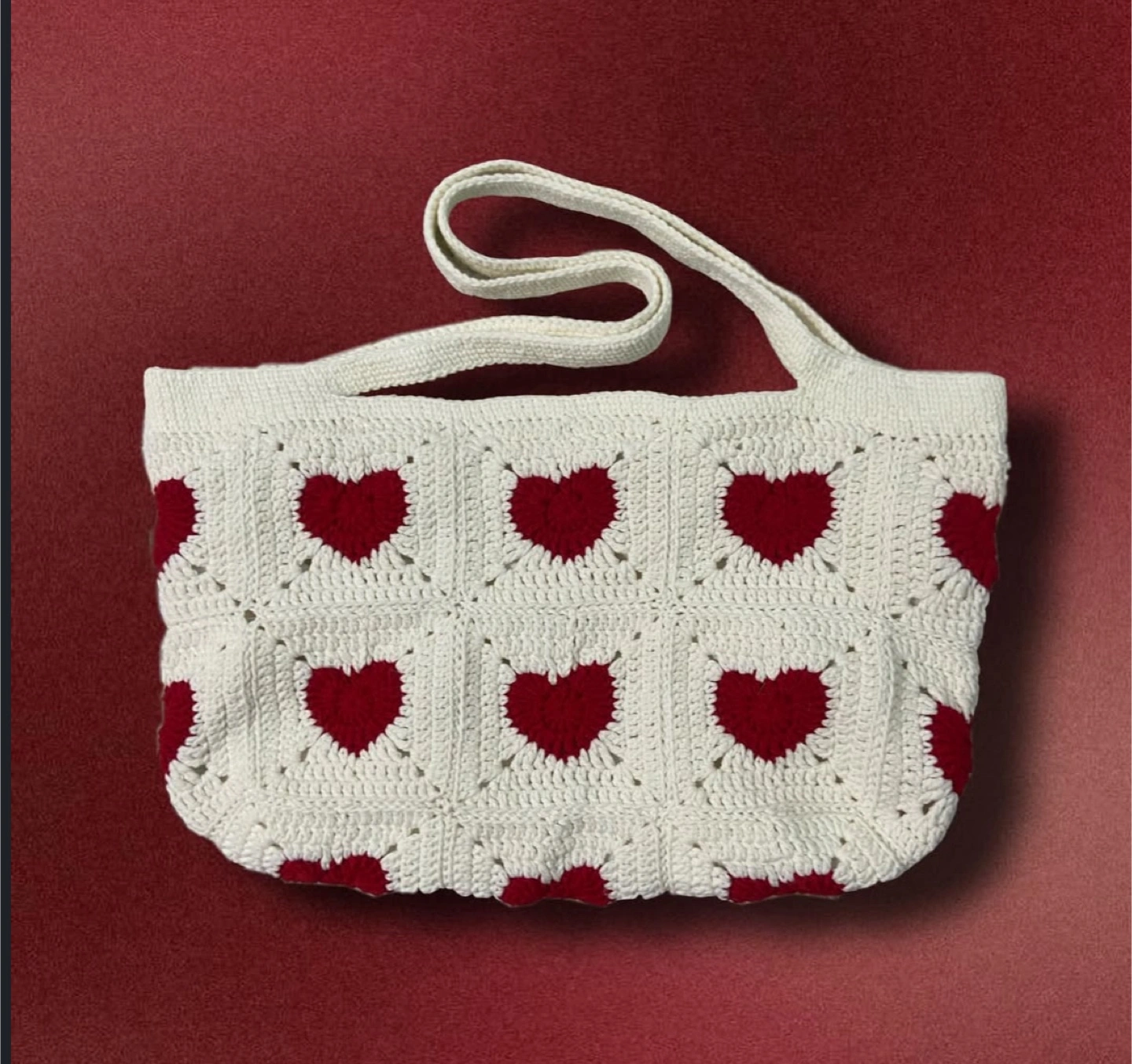 Super cute crochet tote bag with a heart pattern! It's handmade with fabric on the inside!!