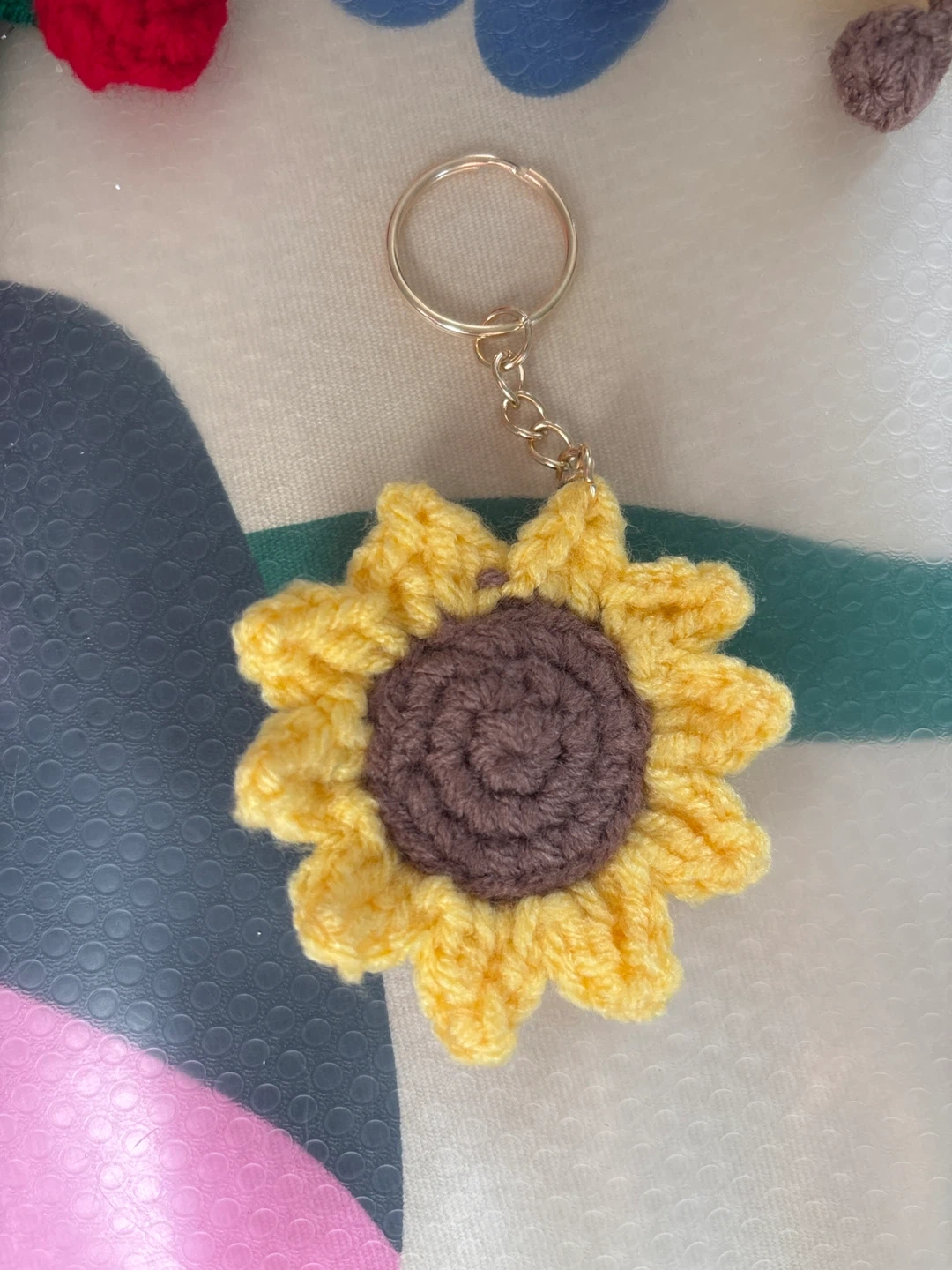 31A cute, handmade crochet sunflower keychain! It's perfect for adding a little sunshine to your keys or bag. The colours are bright and cheerful, and it's in great condition.