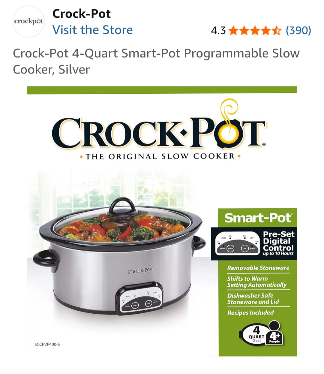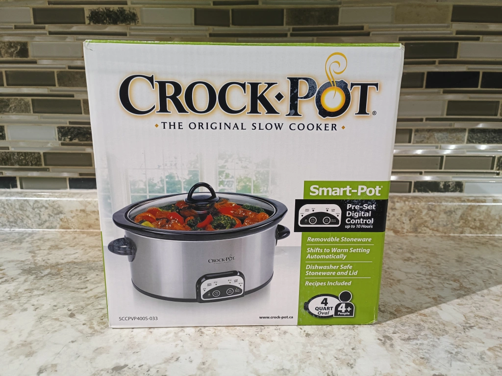 Looking to sell a Crock-Pot 4-Quart Smart-Pot programmable slow cooker in silver! It new and comes with the original box. This slow cooker has a pre-set digital control for up to 10 hours and shifts to warm setting automatically. It also includes a removable stoneware, dishwasher safe stoneware and lid, and recipes