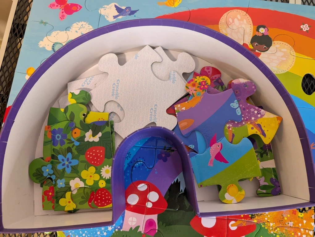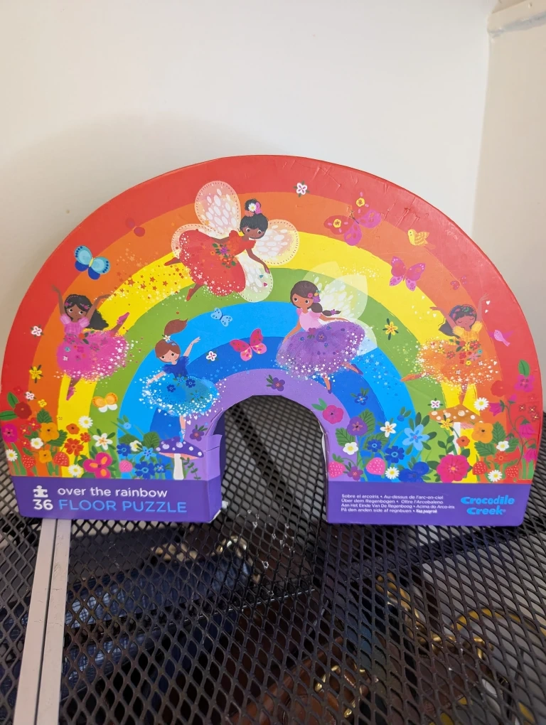 65Selling a Crocodile Creek 'Over the Rainbow' floor puzzle! It's a 36-piece puzzle that measures 20" x 27" (50 cm x 68 cm) when completed. Recommended for ages 3+