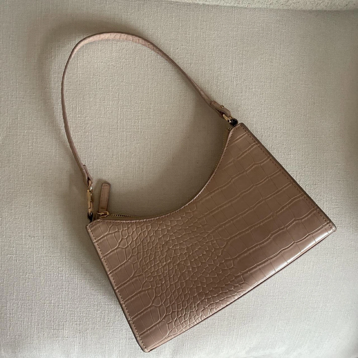 Stylish shoulder bag with a crocodile embossed texture in a lovely blush colour! Perfect for adding a touch of elegance to any outfit. It's in great condition, ready for a new home