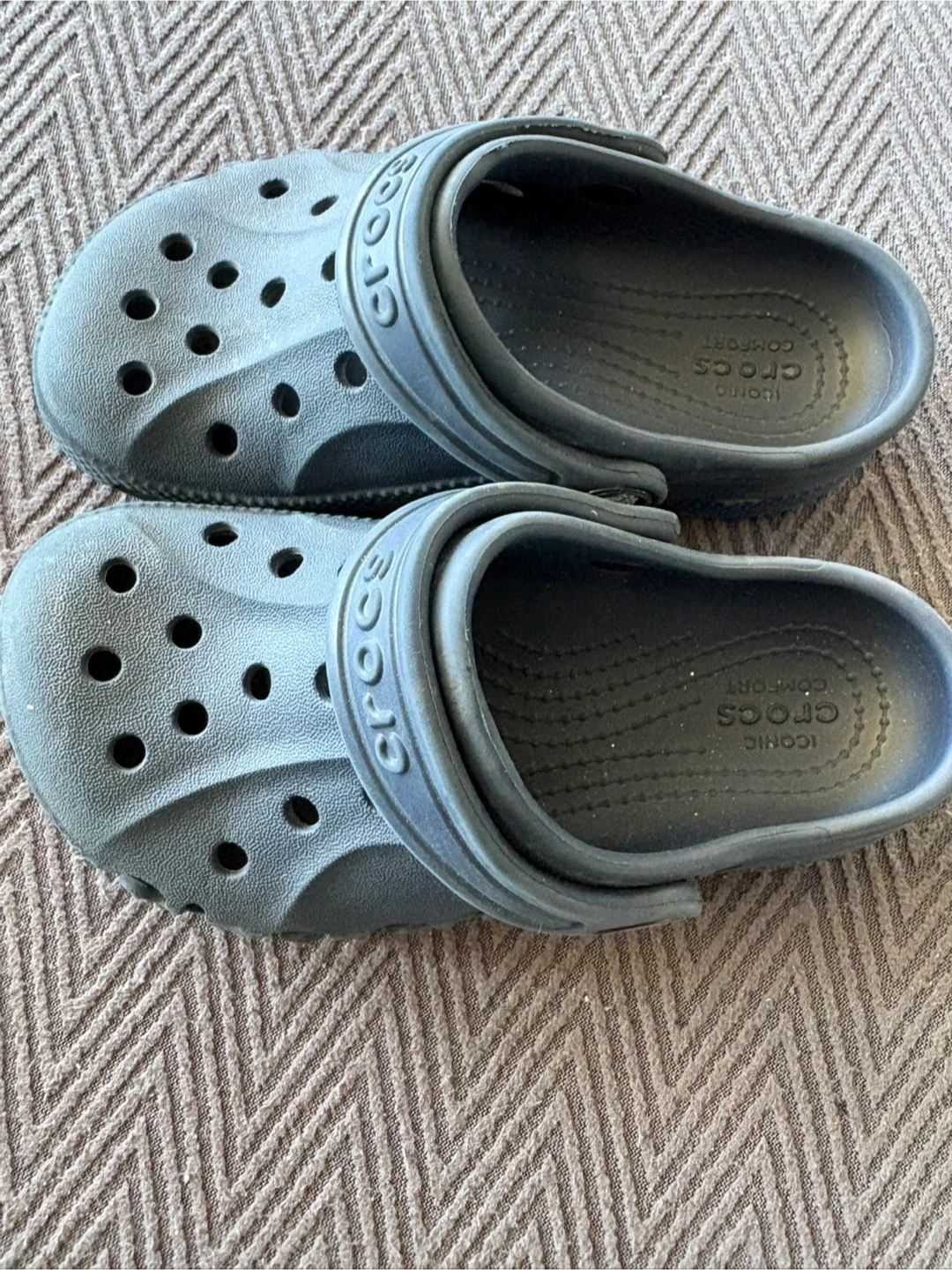 Selling a pair of Crocs Classic clogs in size 10. They are in great condition and ready for a new home! The colour is a neutral grey, perfect for everyday wear. These are super comfy and easy to slip on and off, great for running errands or just relaxing around the house