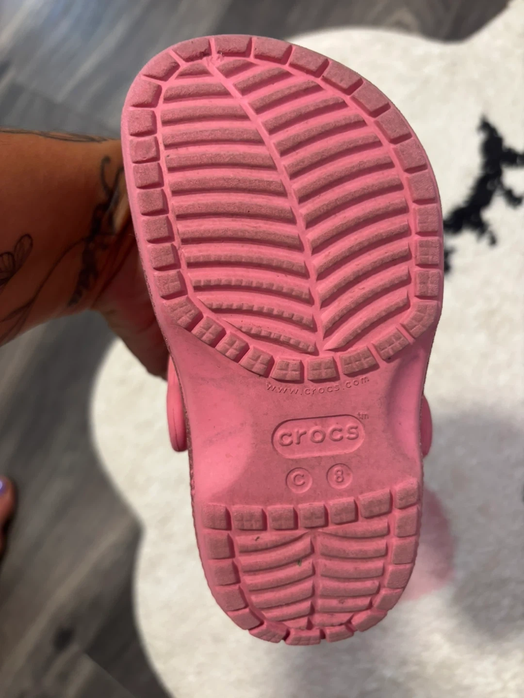 10Selling a pair of kids' Crocs clogs in pink! They are size C8 and perfect for little feet. These are super easy to clean and comfy for everyday wear
