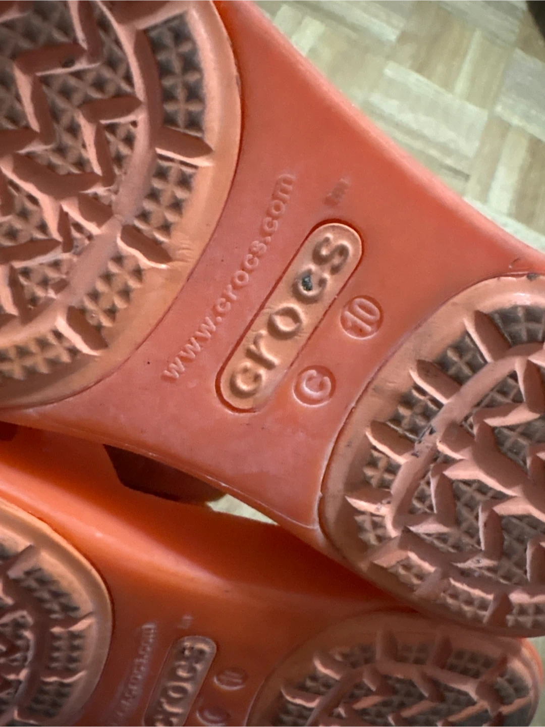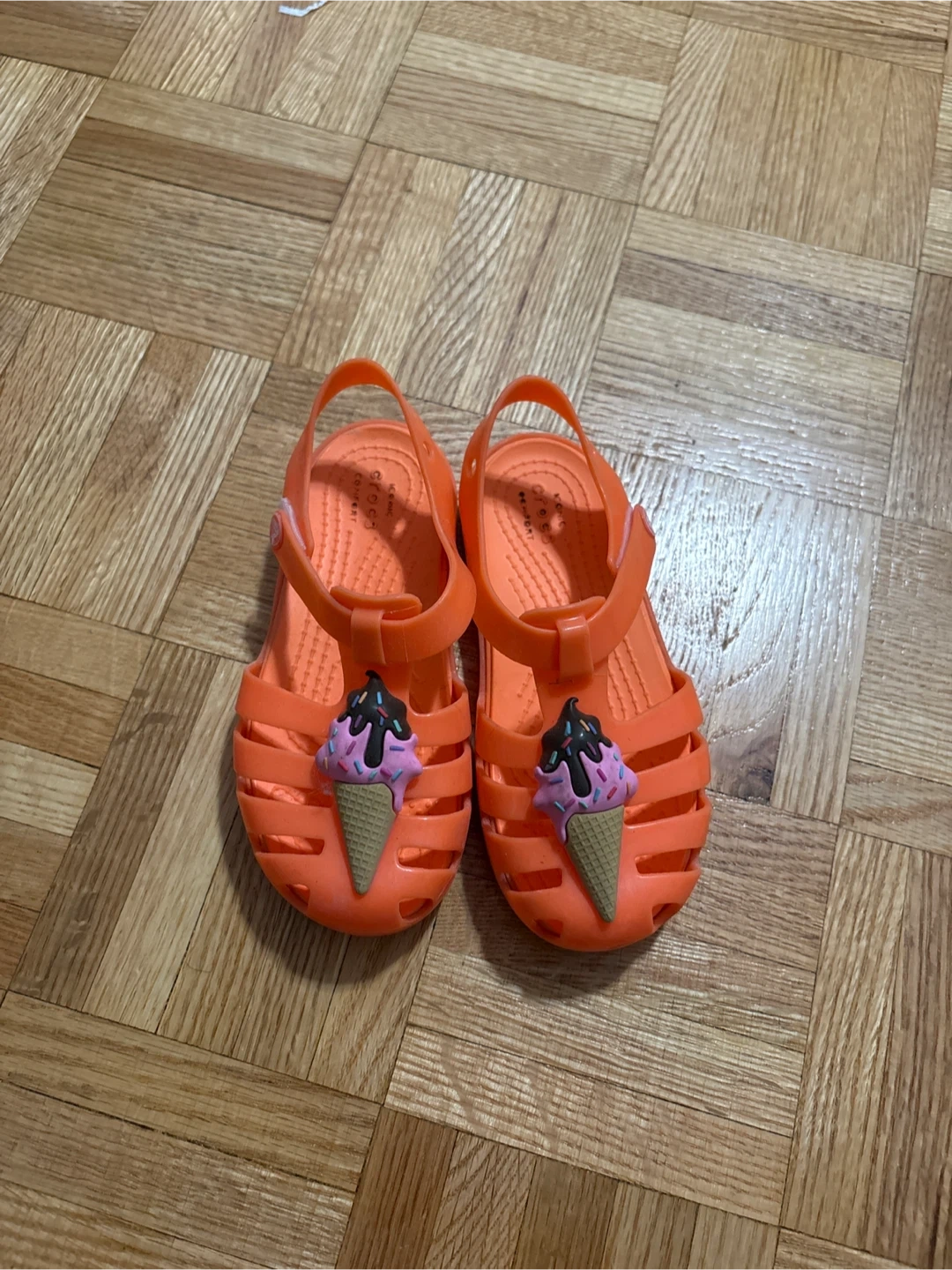 90These adorable orange Crocs Isabella Novelty Sandals are perfect for your little one! They feature a cute ice cream cone design and are in great condition. Size 10. It’s a rubber sandals.