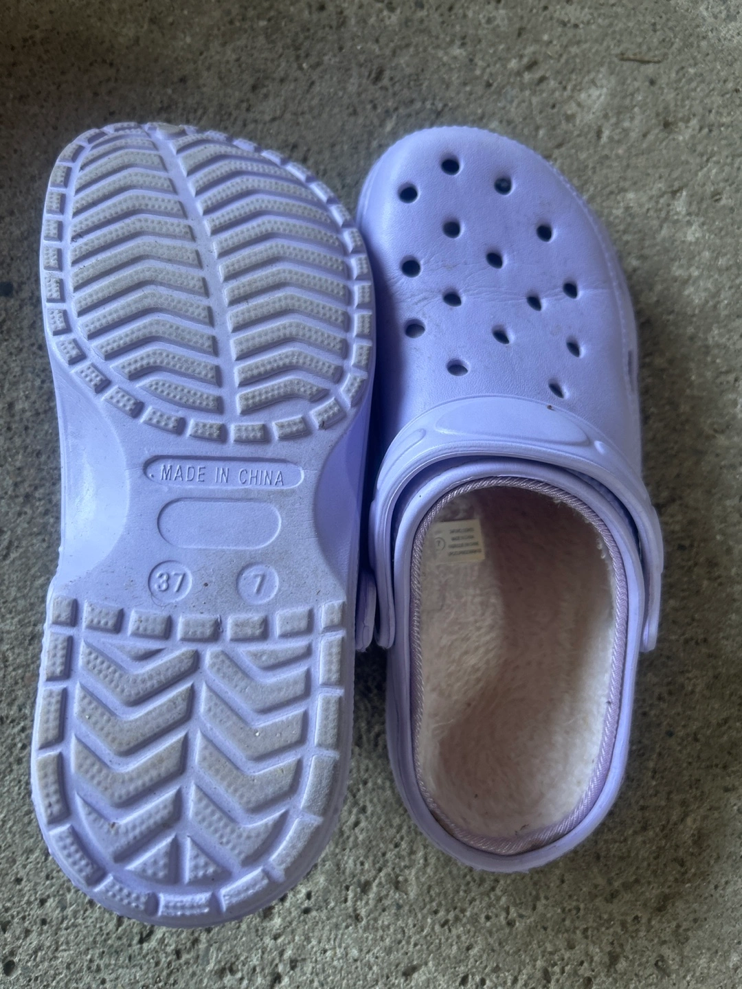 Selling a pair of purple Crocs lined clogs! They're in great condition and super comfy. The size is a women's 7.