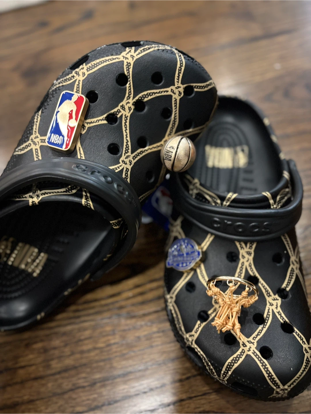 59selling a pair of these crocs. these are brand new, in a great condition, and never been used!!! its has an NBA theme with charms on it perfect for anyone who plays basketball and NBA fans!!! get it noowwww!!! 🤩 — cash & et available ! — pick up near stevenson rd & laval dr OR meet up at Scarborough Town Centre or Oshawa Centre !