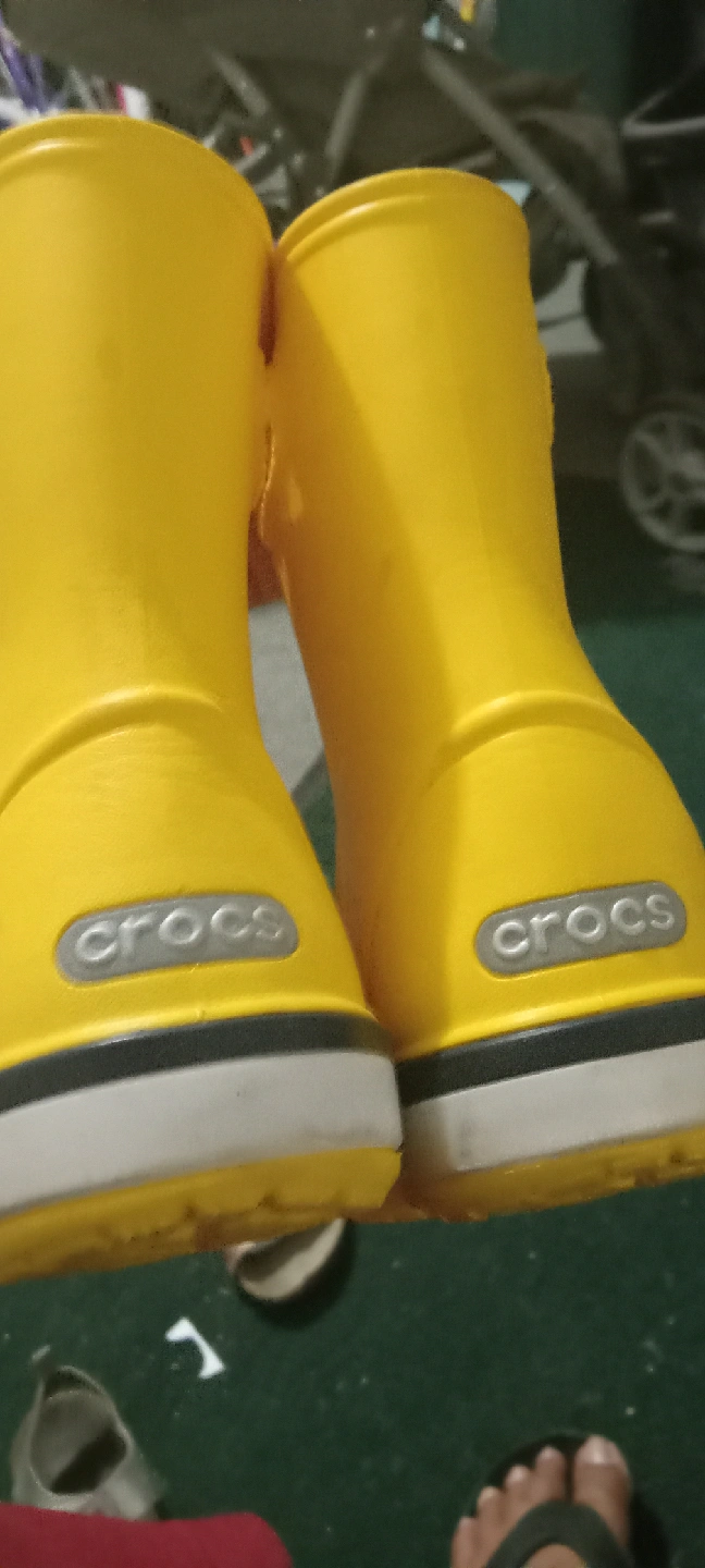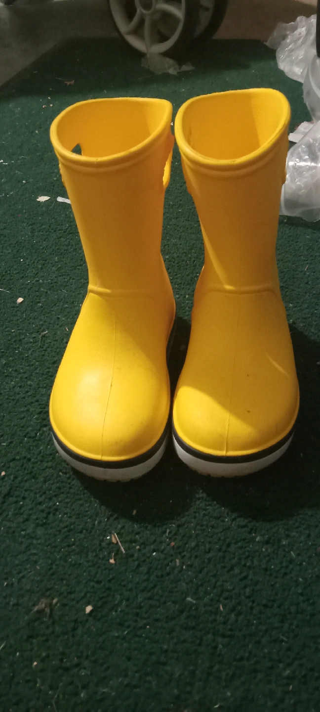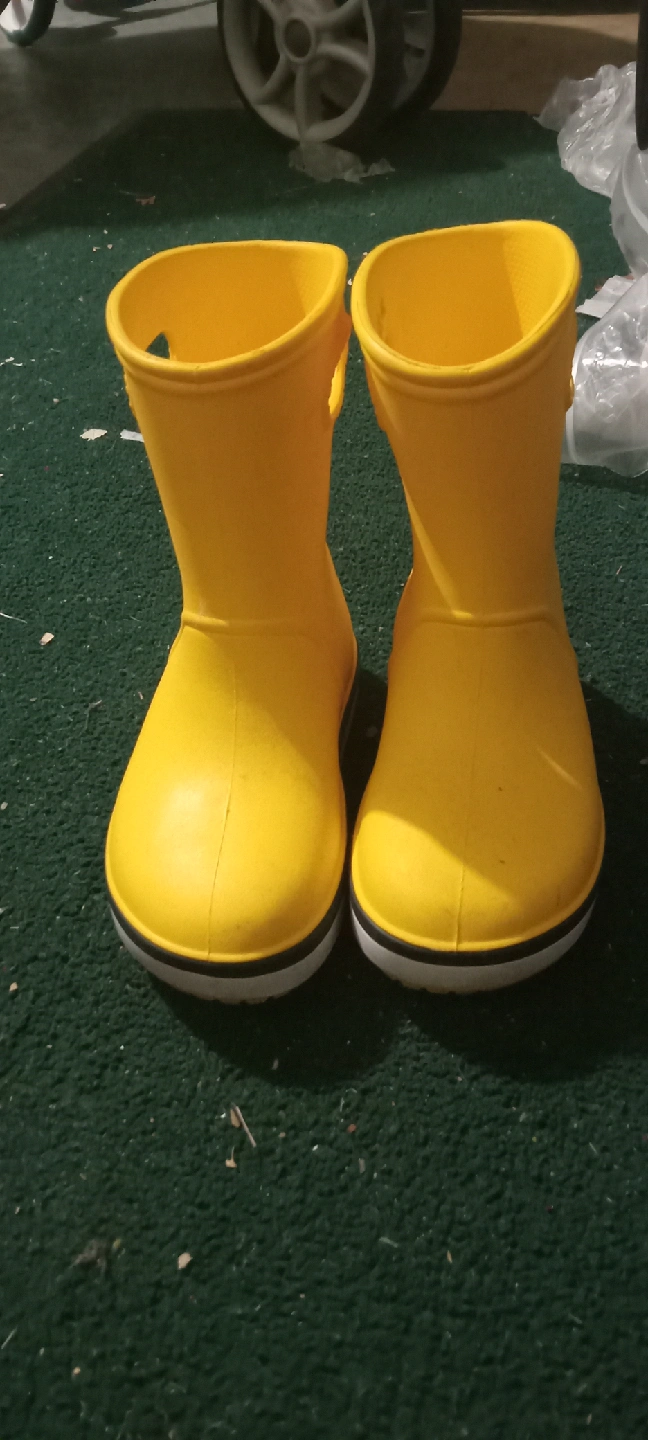 564Selling a pair of yellow Crocs rain boots. They're in great shape and ready for some puddle jumping!