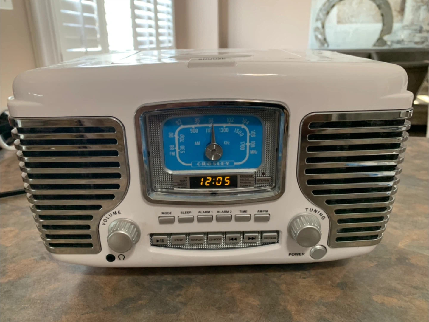 Selling a Crosley Corsair Radio, model CR612B, in white. It comes with the instruction manual. This radio has a retro look and would be a great addition to any room. Features headphone Jack, alarm clock,CD player and Bluetooth. Originally purchased on Amazon for $149.99.