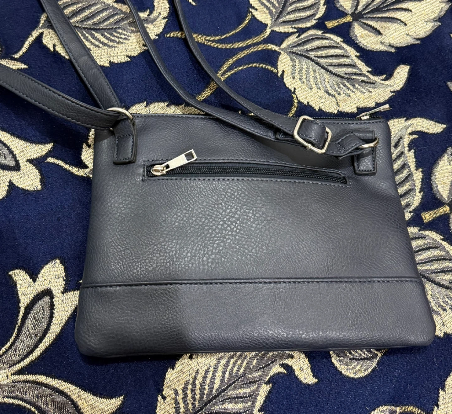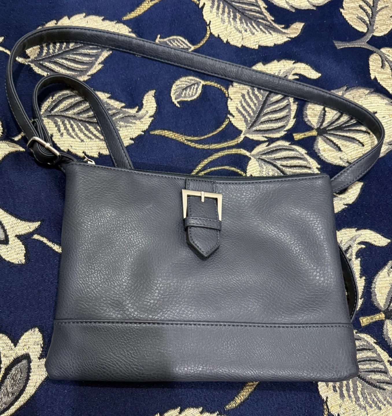 85Selling a cute blue crossbody bag! It's in great condition and perfect for everyday use. The bag has a zipper closure and an adjustable strap.