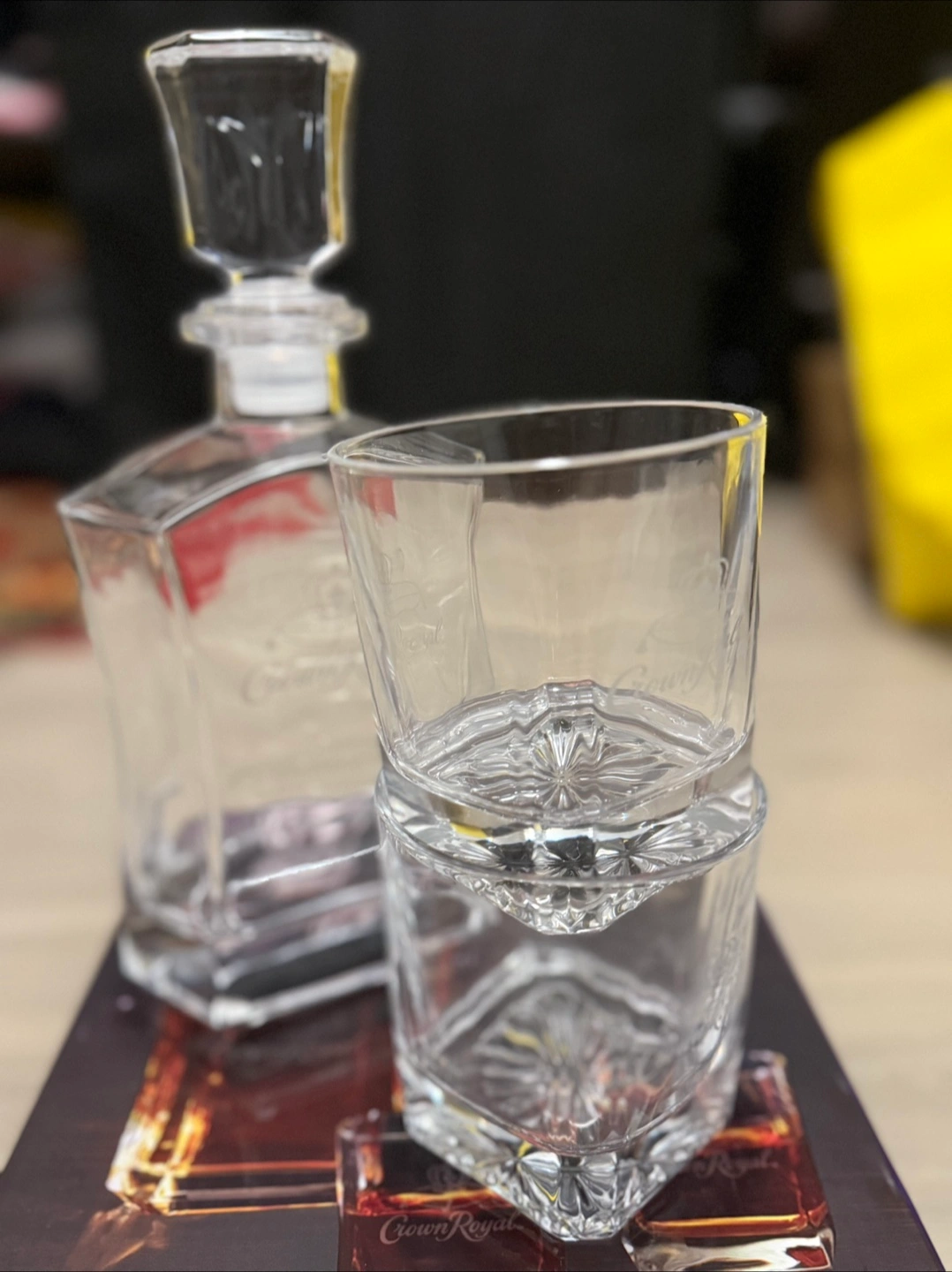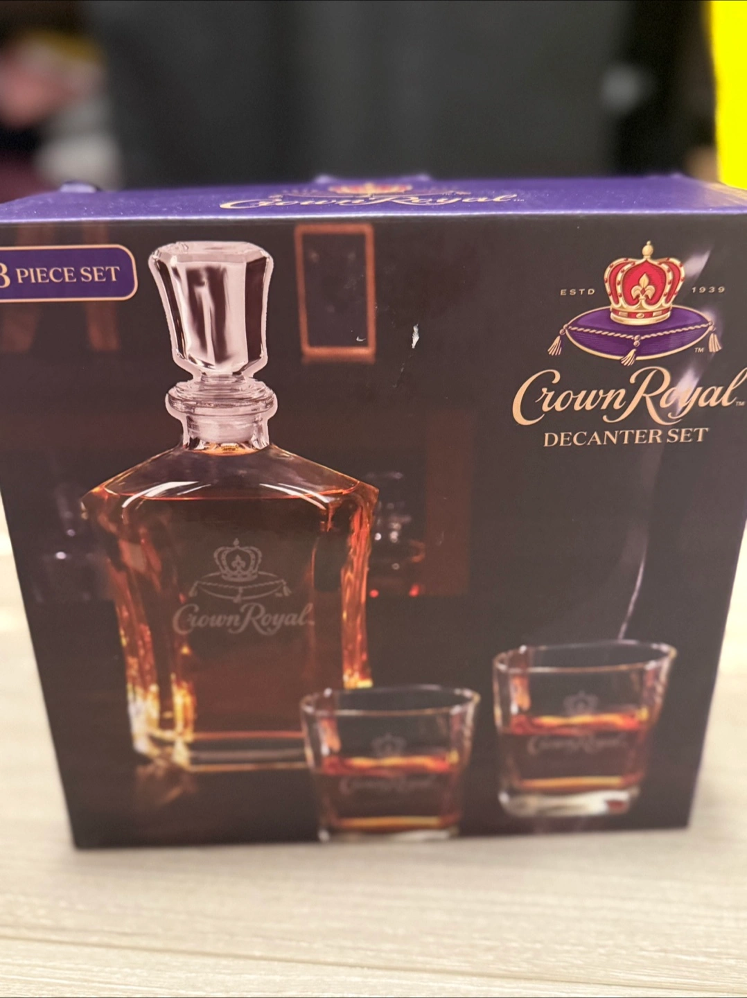 9Selling a Crown Royal Decanter Set! It's a 3-piece set, complete with the decanter and two glasses. Perfect for your home bar or as a gift for a whisky enthusiast. The box is included! Pick up only. Near Eglinton Ave East