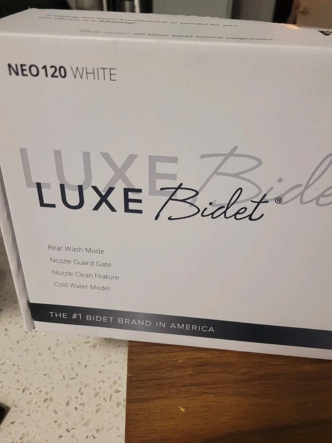 This is a Luxe Bidet NEO120 in white. It's a cold water model with rear wash mode and a nozzle clean feature. It's the #1 bidet brand in America.