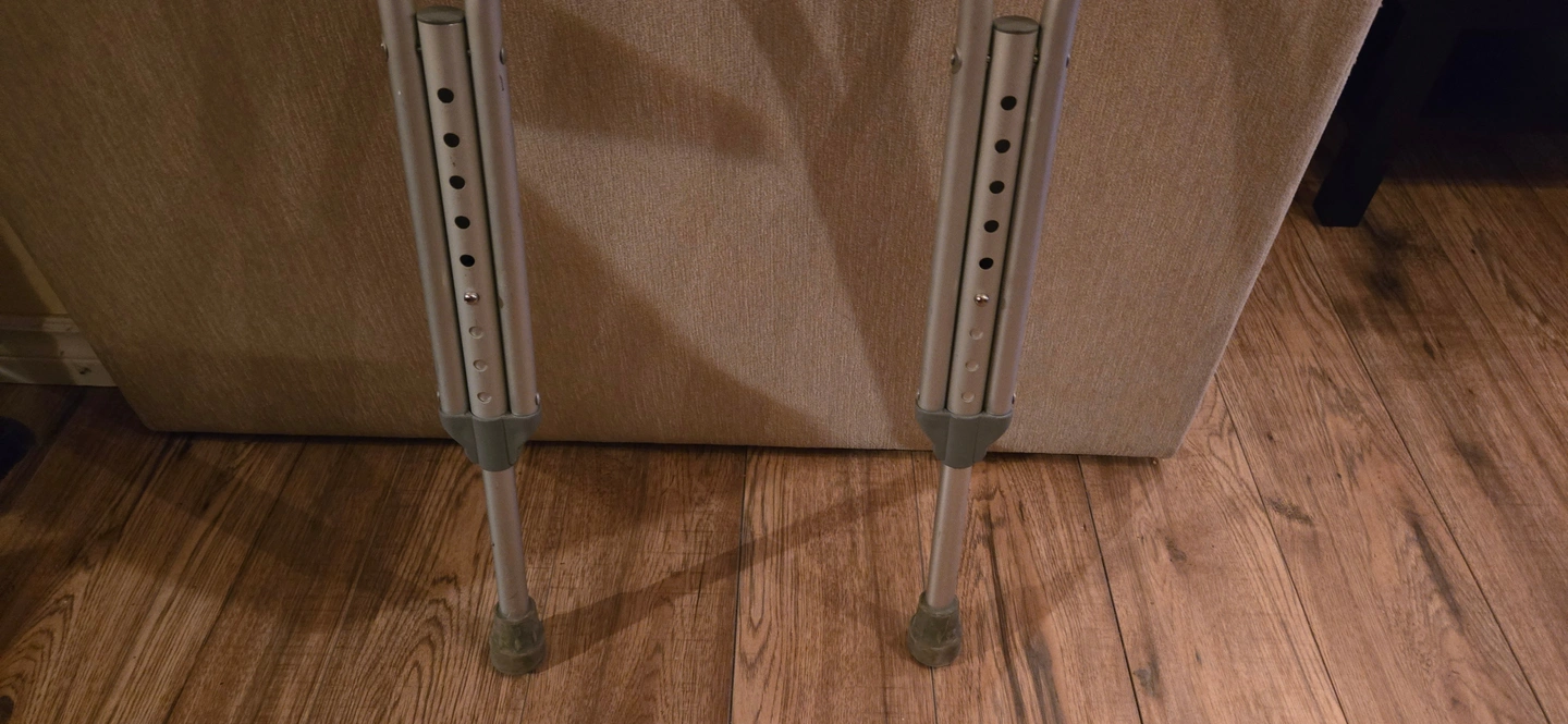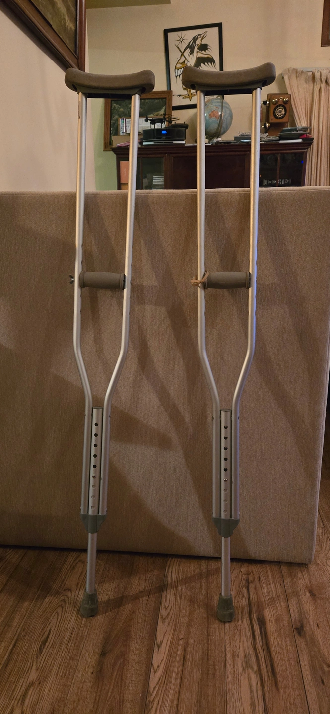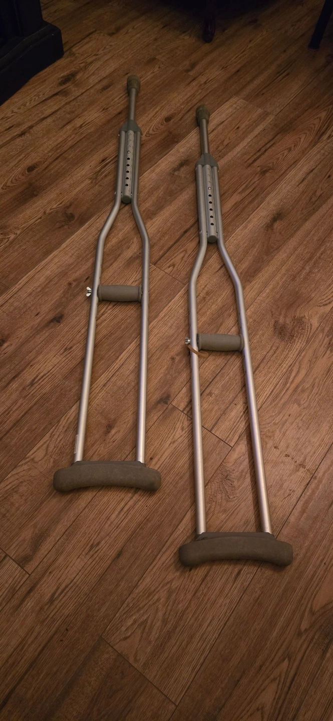 I am 5'11.5" and used the crutches when I blew out my knee. They say 5'2" to 5'10" but they worked fine for me. Used for a few weeks and in perfect working order. All adjustable buttons move freely and the adjustable tube section slide easily. All working great. Pick up only, Pape and Danforth area, Muriel Ave.