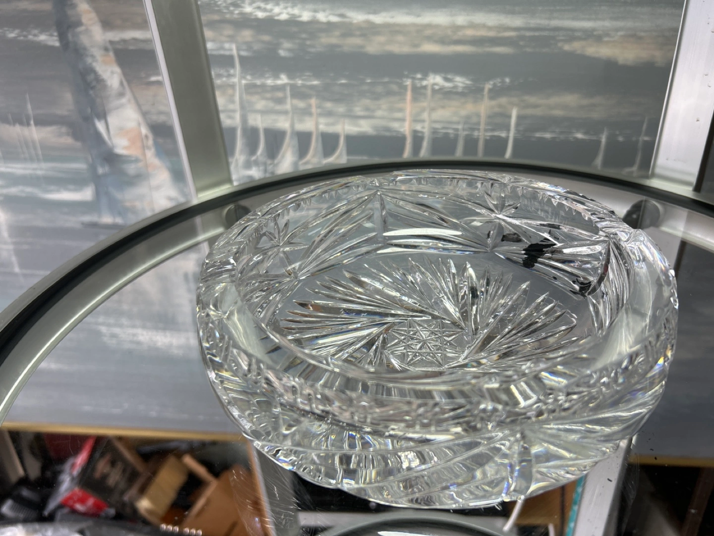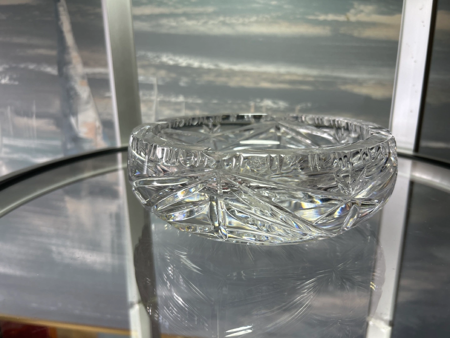 15Round crystal ashtray. Cut glass design. Small size, perfect for a table or desk. Unique pattern.