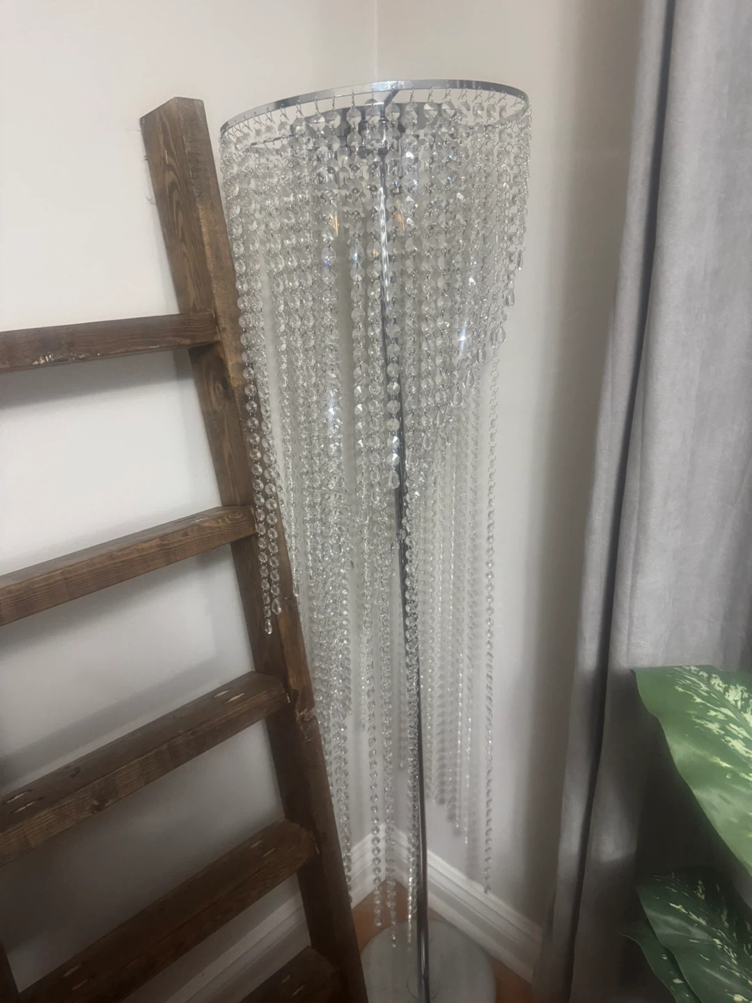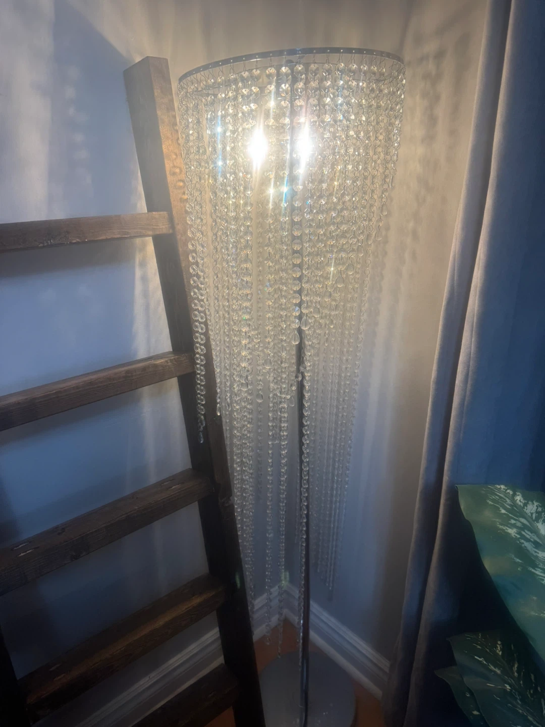 Add a touch of elegance to any room with this stunning crystal beaded floor lamp! It's perfect for creating a warm and inviting atmosphere in your home. The lamp features strands of clear crystals that cascade down from a chrome-finished frame, creating a beautiful shimmering effect when lit. This lamp is sure to be a conversation starter and a stylish addition to your decor