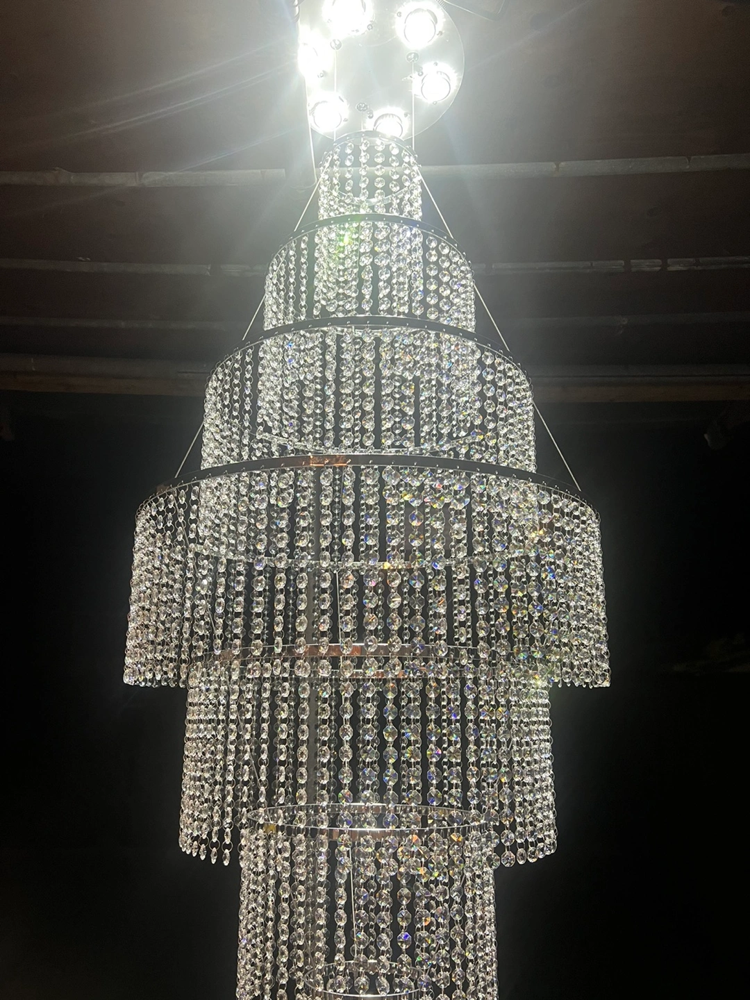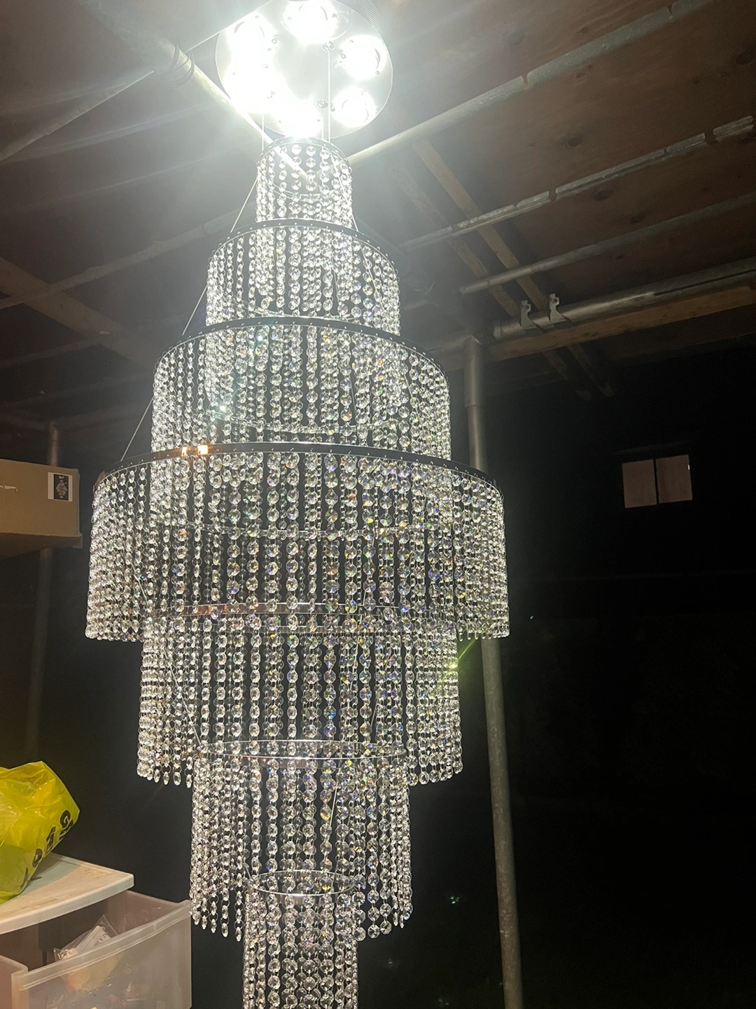 Beautiful crystal chandelier! This stunning piece will add a touch of elegance to any room. It features multiple tiers of sparkling crystals, creating a dazzling display of light. Perfect for a dining room, living room, or entryway