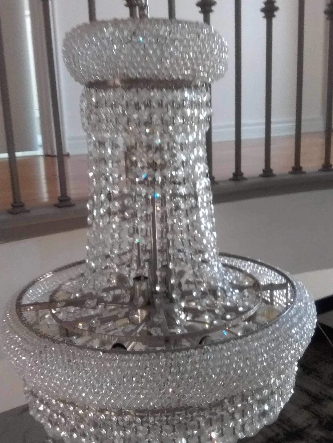 Stunning crystal chandelier. Elegant design. Beautiful addition to any home. Great centerpiece.