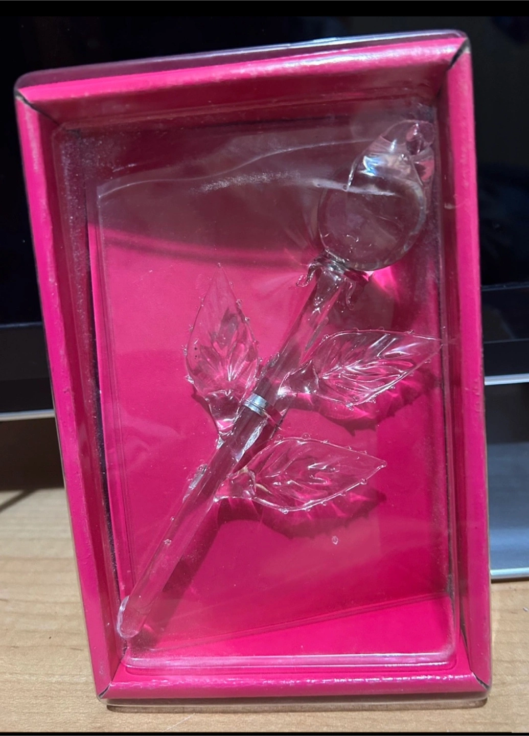 Selling a clear crystal rose, still in its original pink box! It's a beautiful piece for home decor and would look lovely on a shelf or desk. It's in great condition and ready for a new home