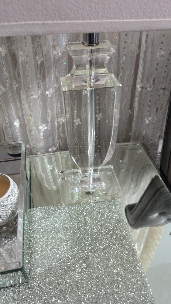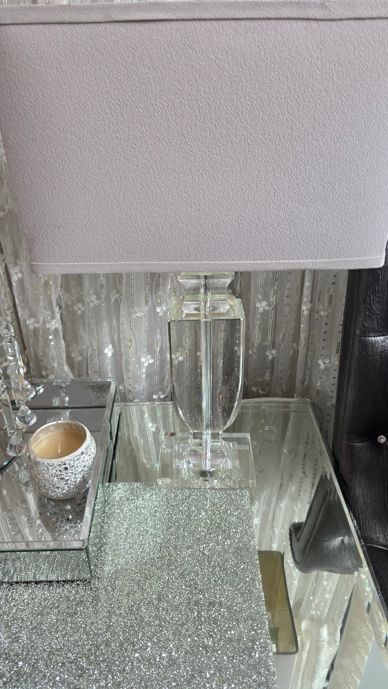 35Selling a beautiful crystal table lamp! It's in great condition and would add a touch of elegance to any room. The base is clear crystal, and the shade is a neutral colour that complements the crystal nicely. It's perfect for a bedside table or living room side table