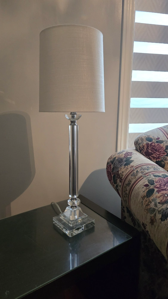 Selling a beautiful crystal table lamp! It has a sleek, modern design that would look great in any room. The base is made of clear crystal, and the shade is a neutral colour. It's in great condition and provides a lovely ambient light. Add a touch of sophistication to your living space with this stunning crystal table lamp! β¨ Features: Tall, clear crystal base with elegant detailing Classic white fabric lampshade for a timeless look Excellent condition β barely used and well cared for Perfect for living rooms, bedrooms, or offices Dimensions: Approx. 28β tall including the shade π‘ Adds beautiful ambient lighting to any room. Pickup available in Mississauga, near Tenthline/ Derry road. Smoke-free, pet-free home. π¬ Contact me if youβre interested or have any questions!