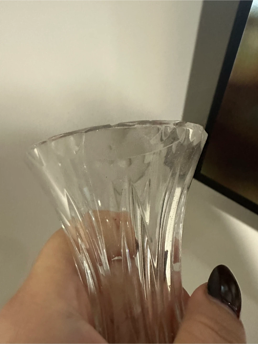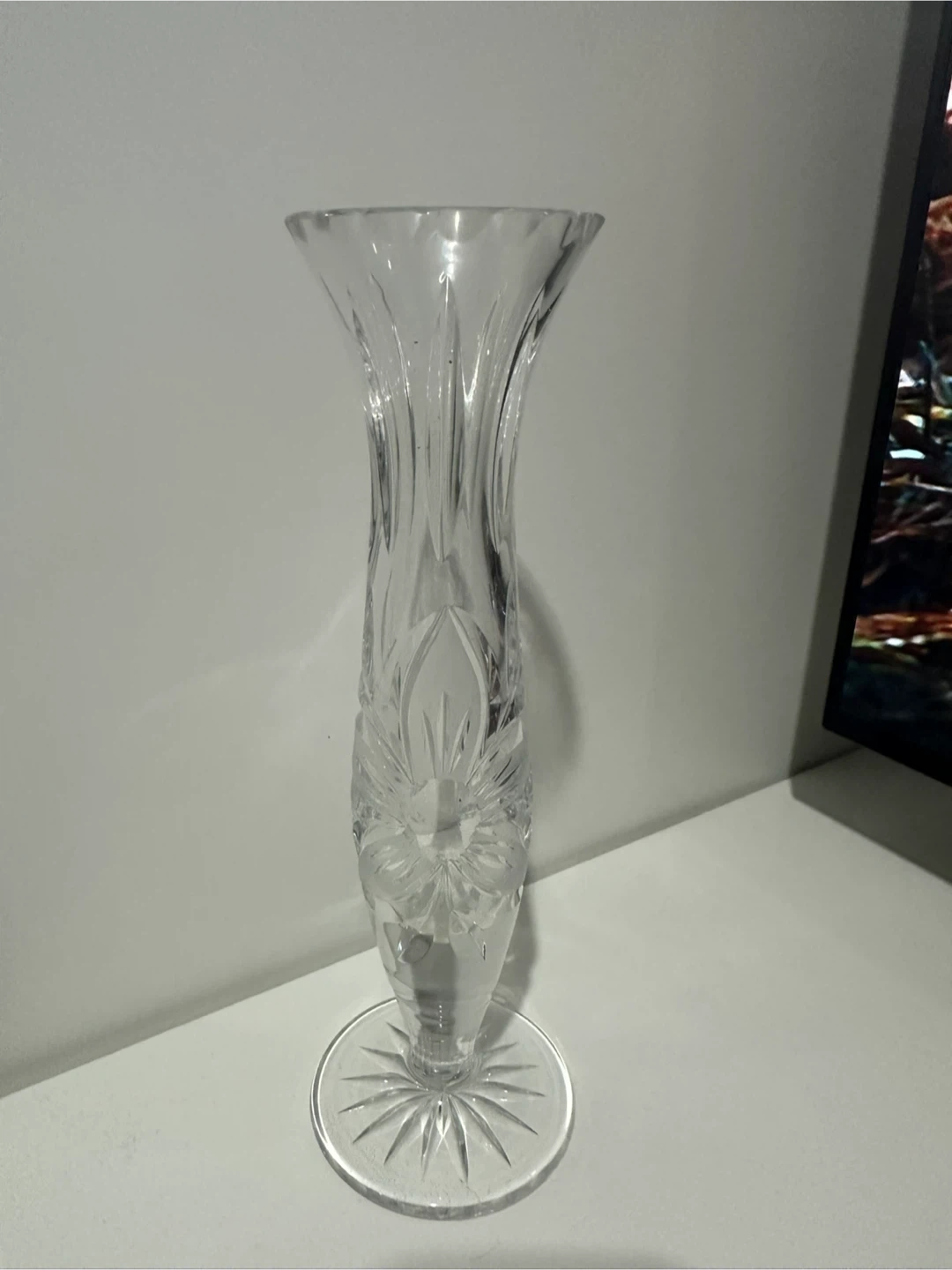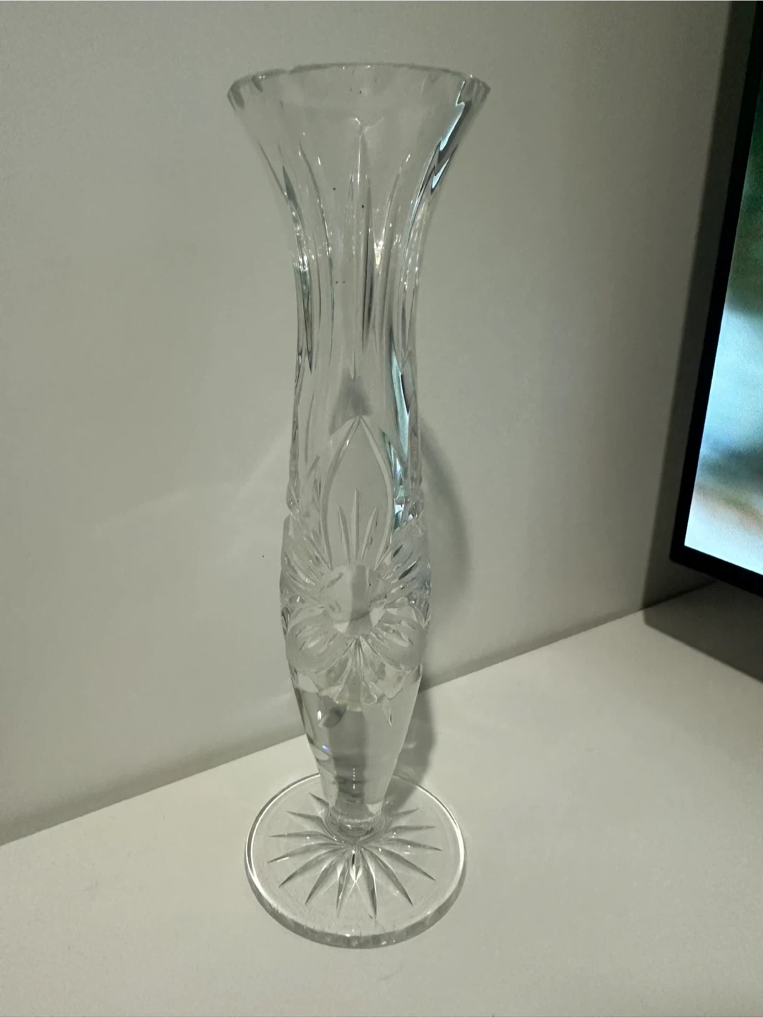 18Beautiful cut crystal vase with a timeless pattern – perfect for flowers or as a display piece. The vase sparkles beautifully when it catches the light. 🌸 Ideal for single stems or small arrangements 💎 Heavy, solid feel with intricate starburst base design ⚠️ Note: There’s a tiny chip at the top rim (hardly noticeable and doesn’t affect use). 💲 Price: $20 📍 Pickup near Paterson station