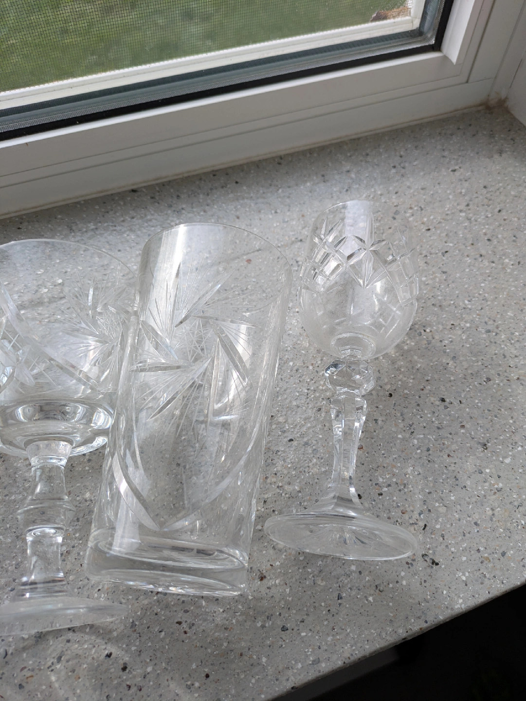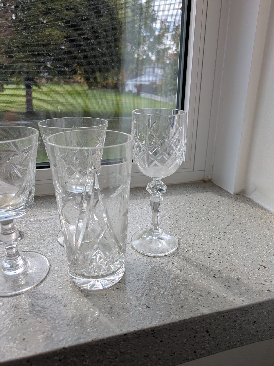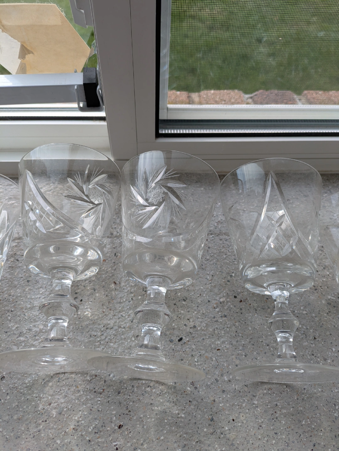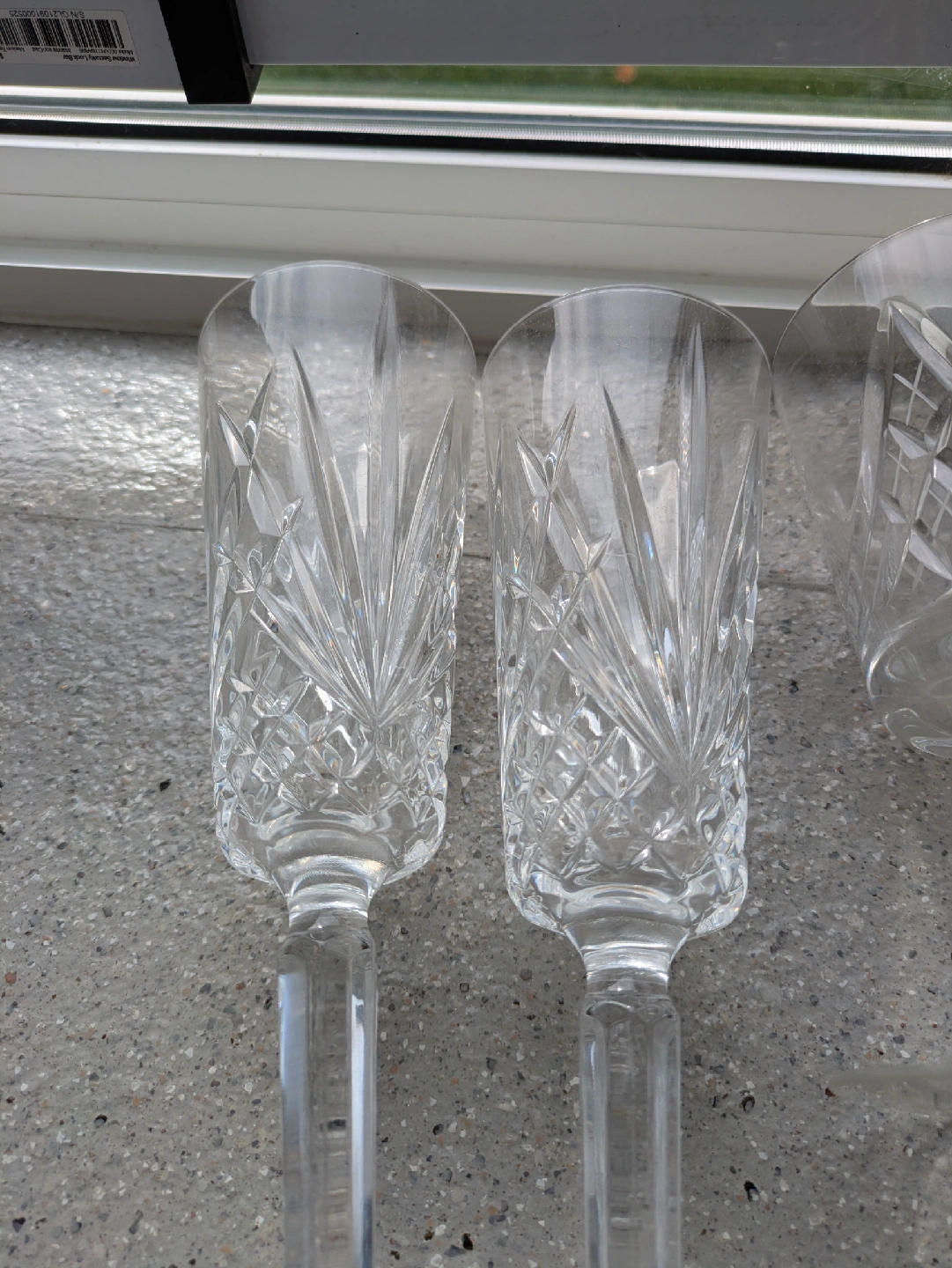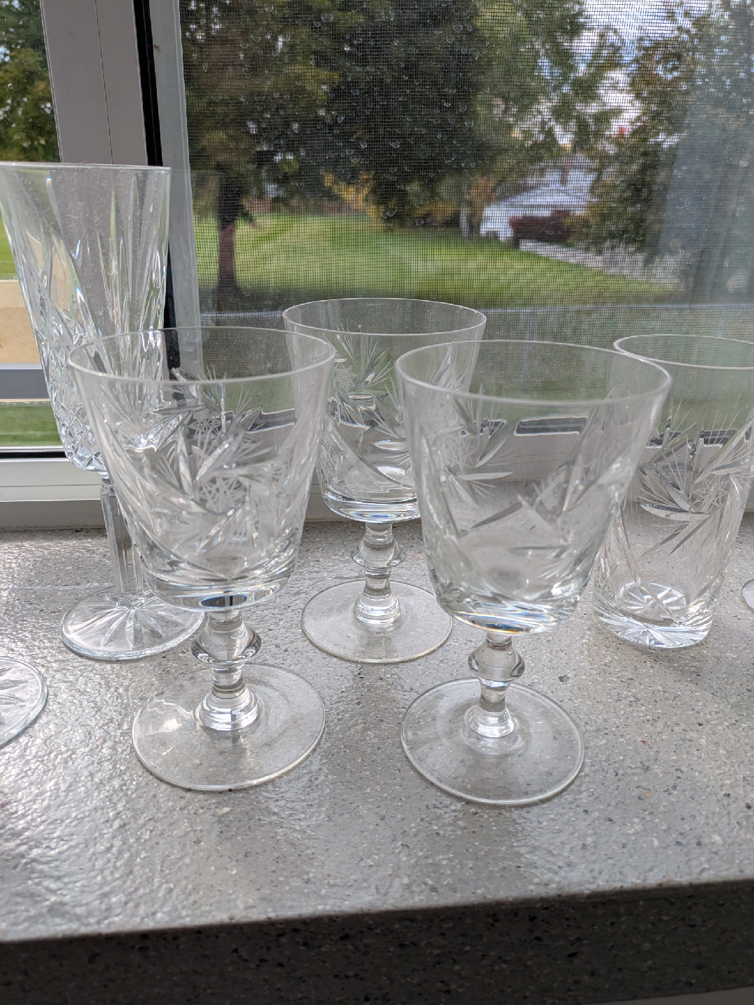 12Selling a set of nine beautiful crystal glasses! There are several different styles, perfect for wine or champagne. They're in great condition and ready for a new home