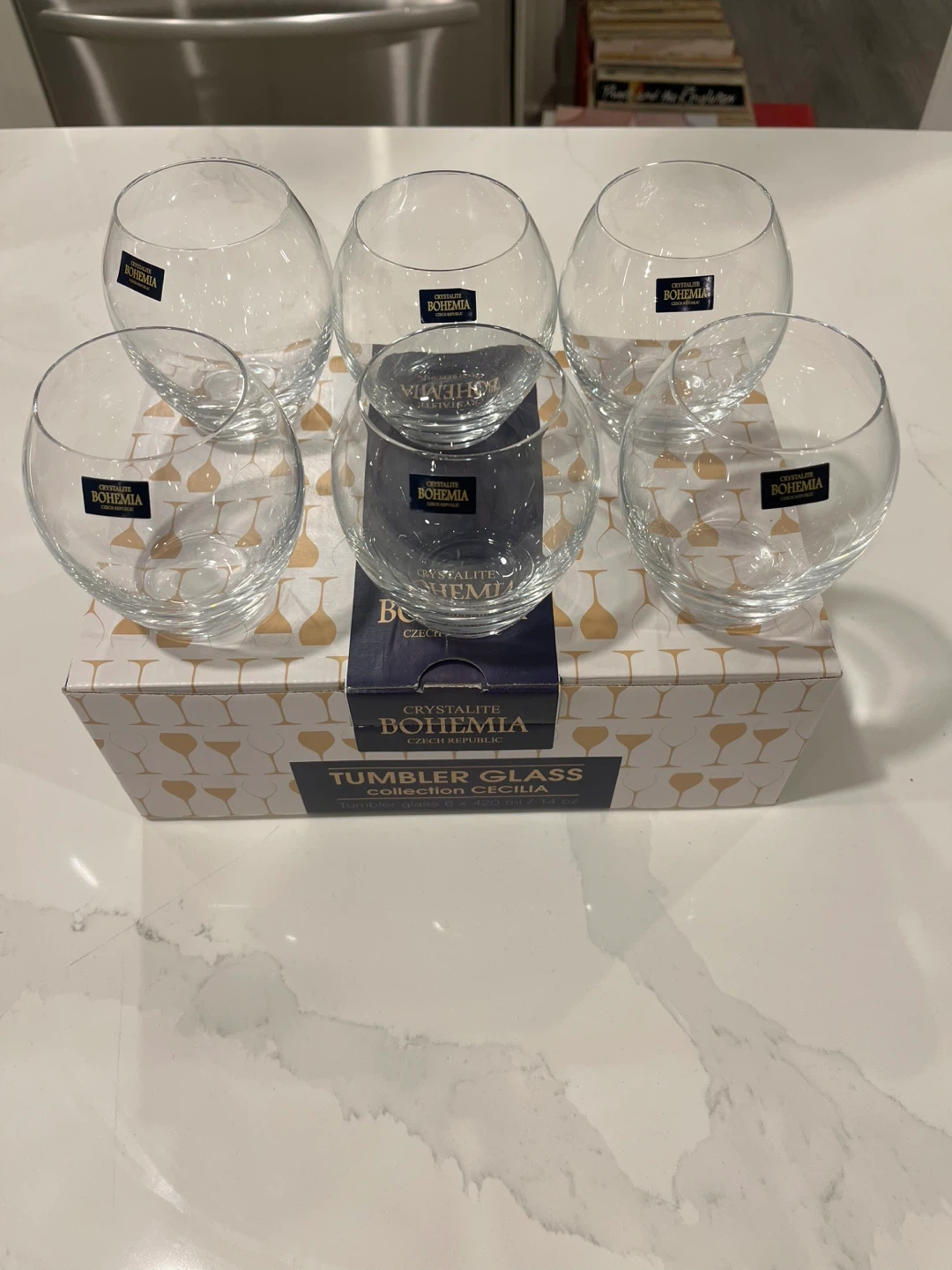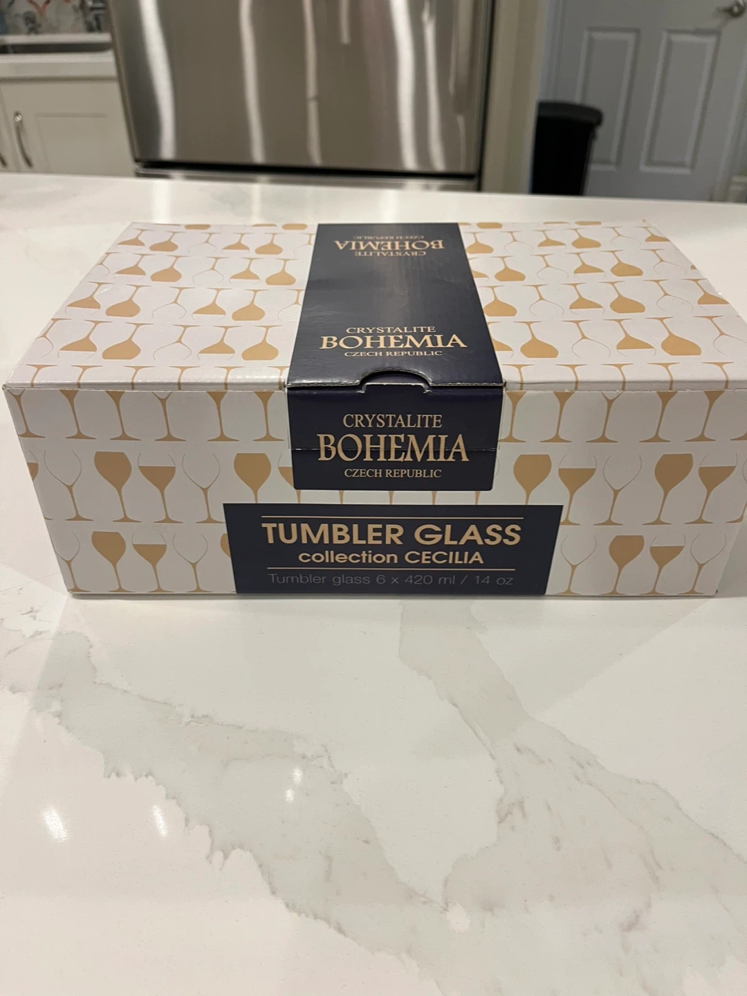 60Selling a set of Crystalite Bohemia Cecilia tumbler glasses! These are brand new in the box and have never been used. Each glass has a 420ml / 14 oz capacity, perfect for any beverage Enhance your glassware or use as a gift