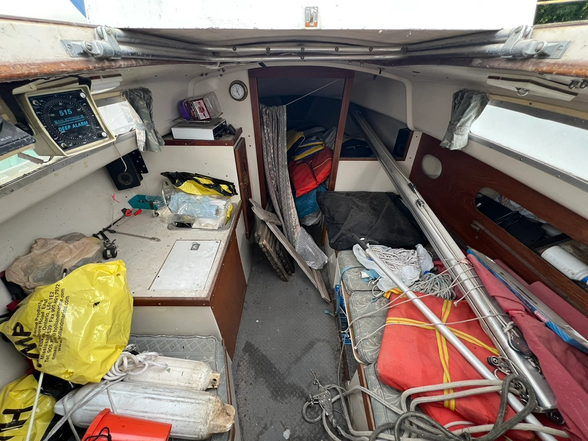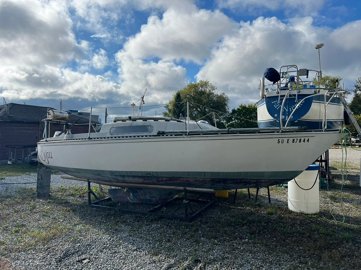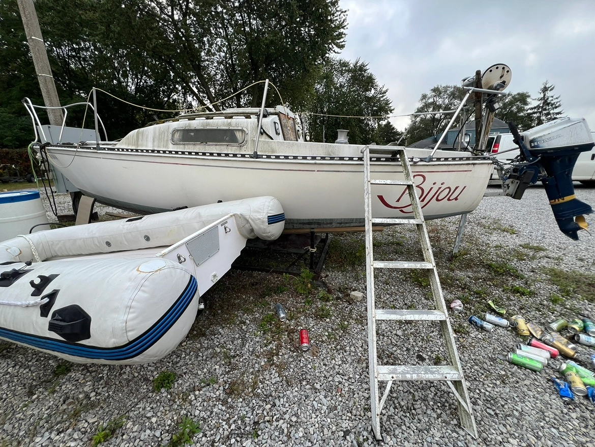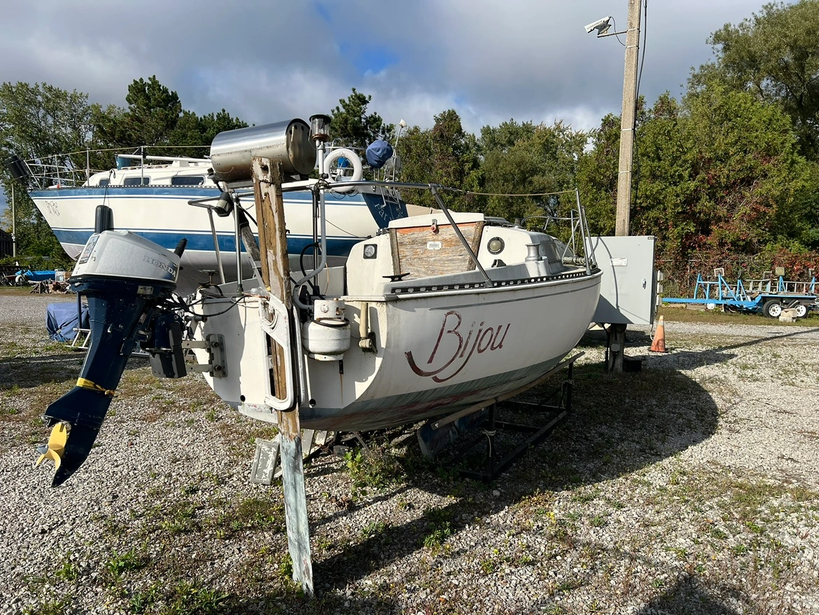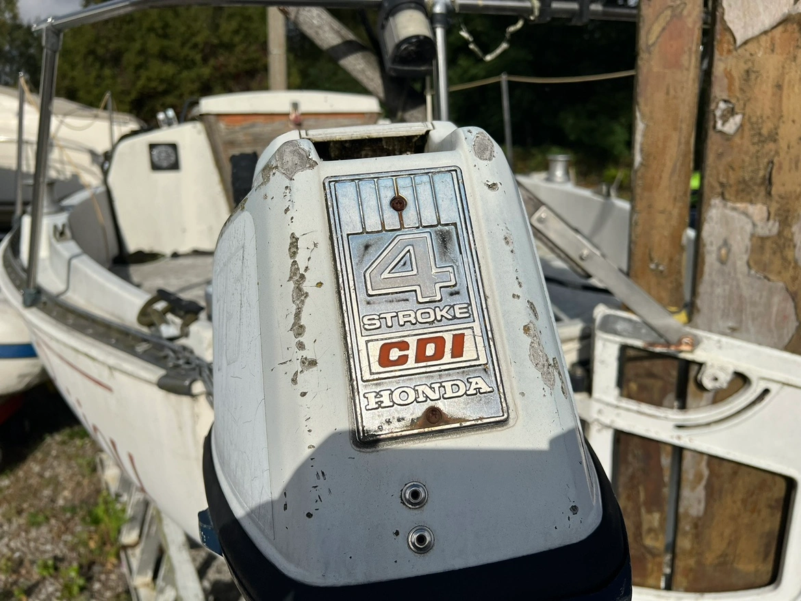 103Needs cleaning and painting. Has been out of water for the last 4 years at Ashbridges Bay. 22 feet long. Comes with a metal cradle, 4 sails and a Honda outboard motor. Swing keel. $699 OBO