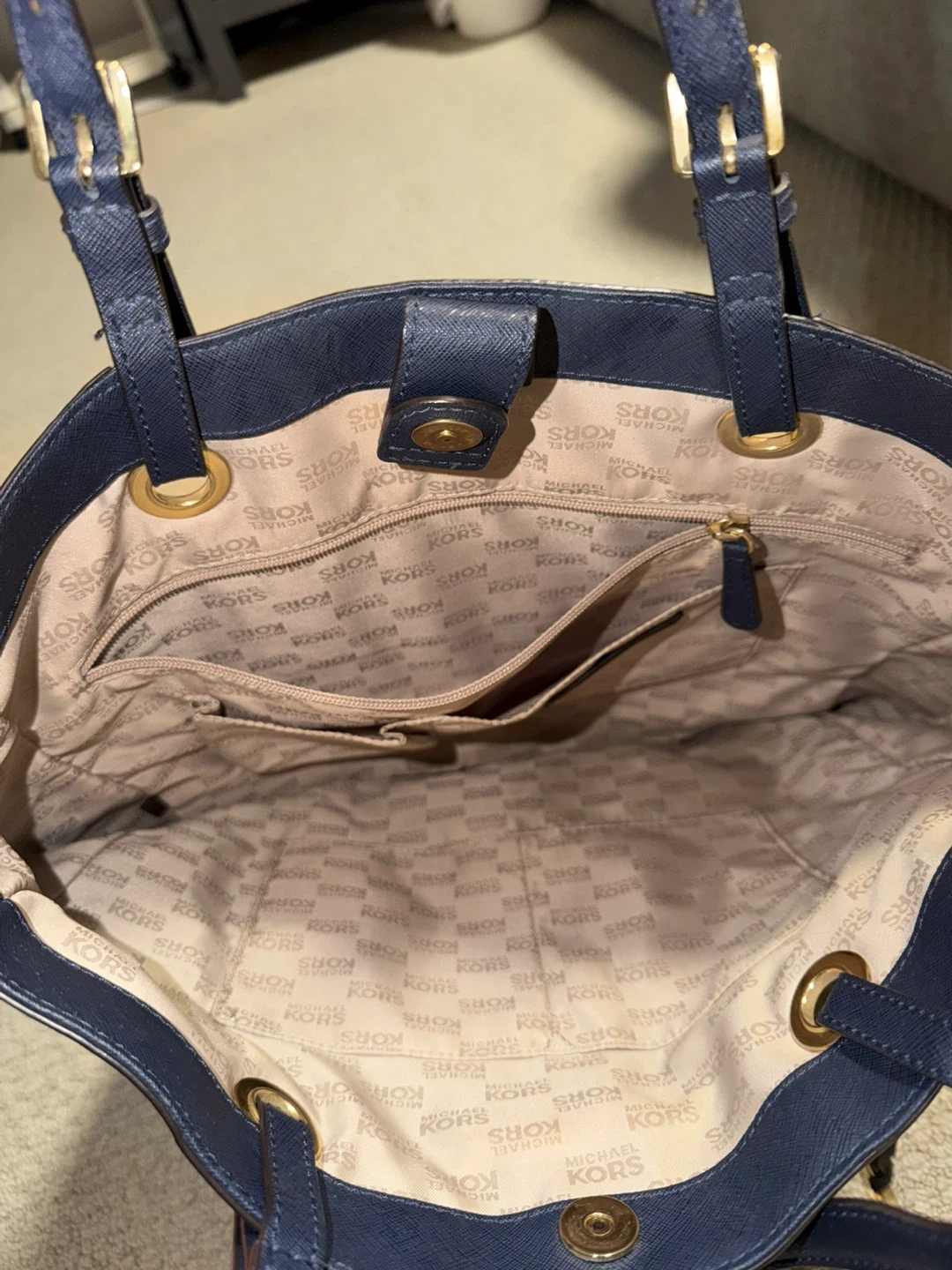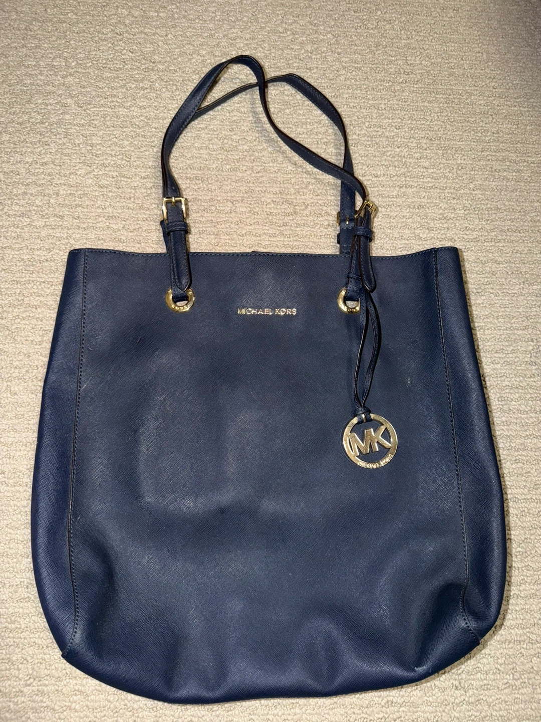 This is a Michael Kors tote bag in navy blue. It's in great condition and ready for a new owner. Perfect for everyday use!
