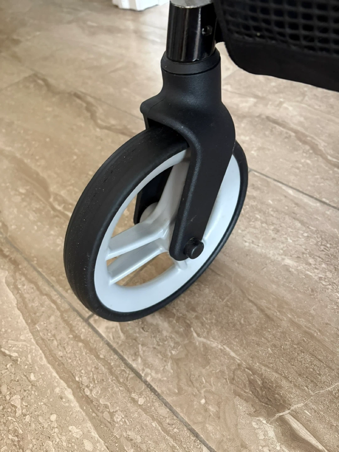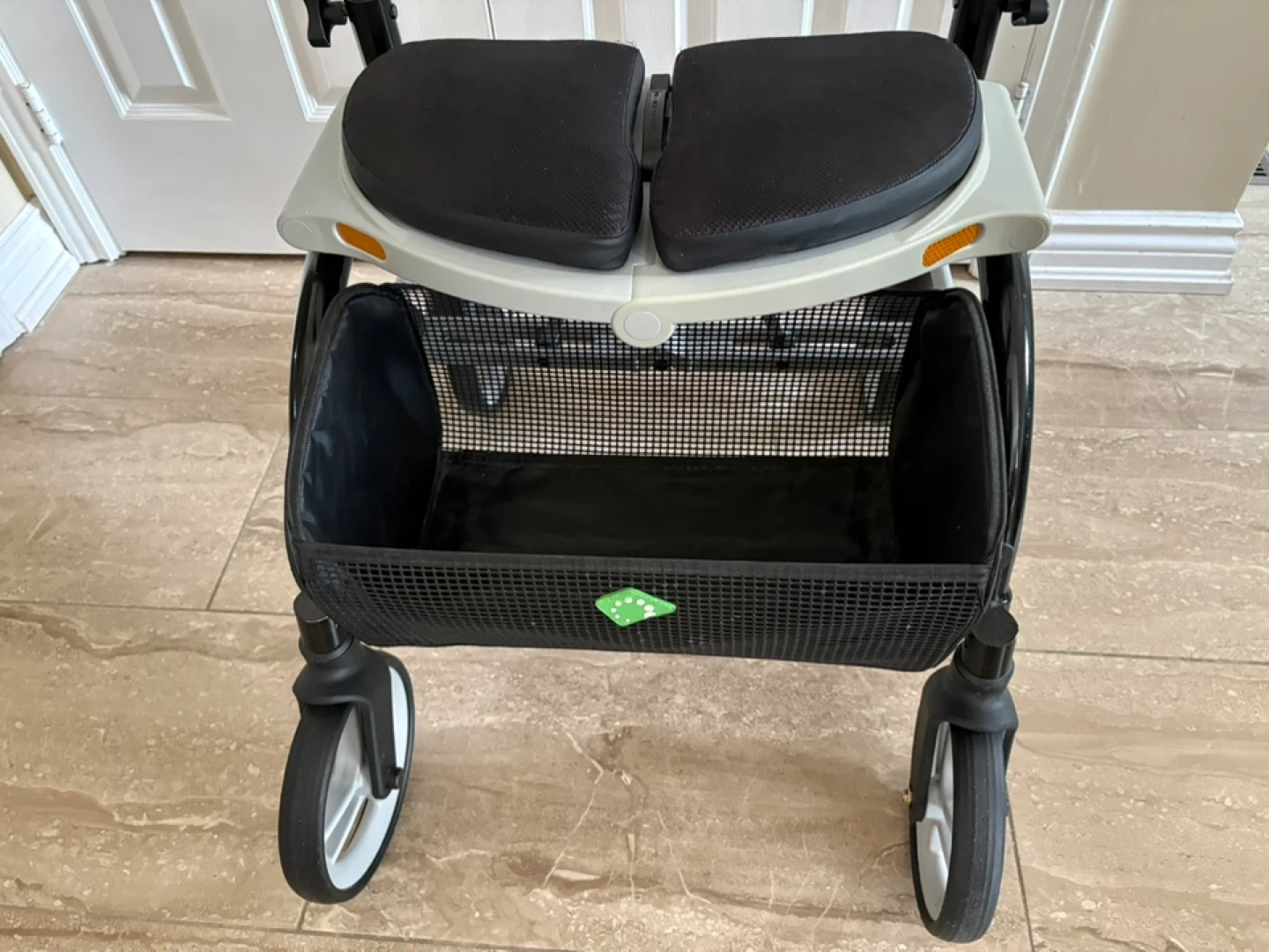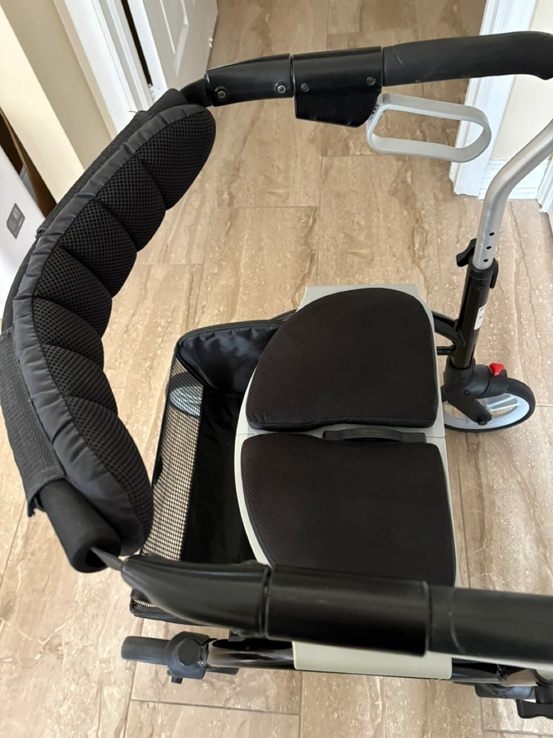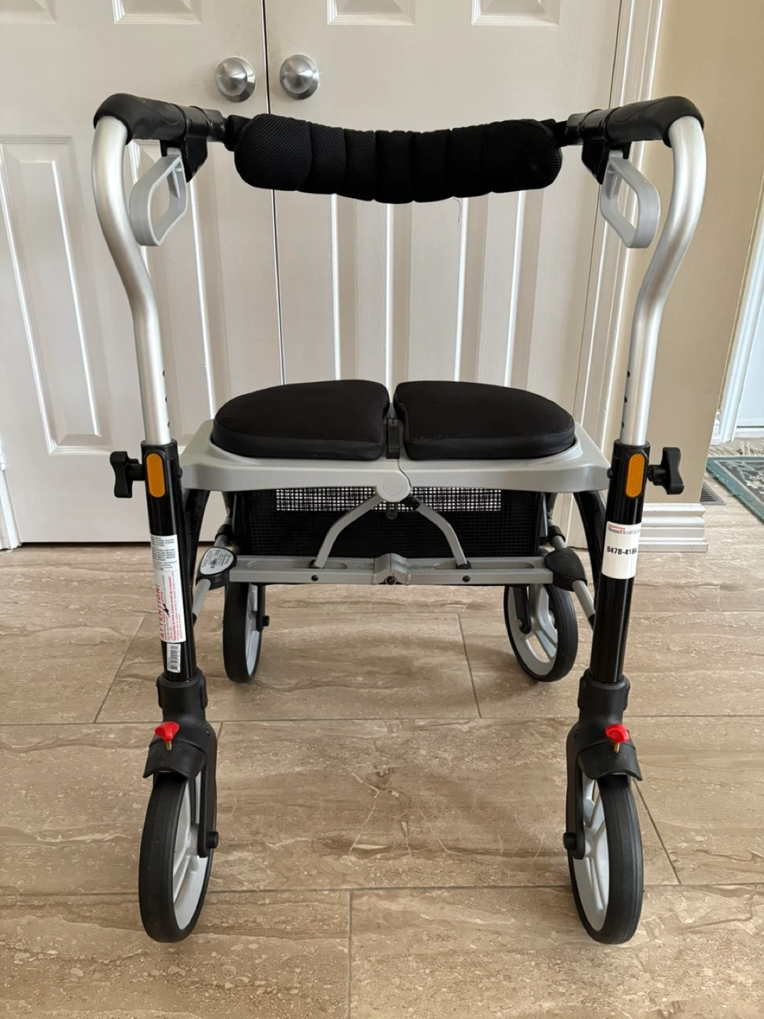 This Evolution walker is the Xpresso Lite Regular C model with cable free brakes. It has a weight capacity of 350 lbs. Includes a basket for storage. It's a great mobility aid for getting around!