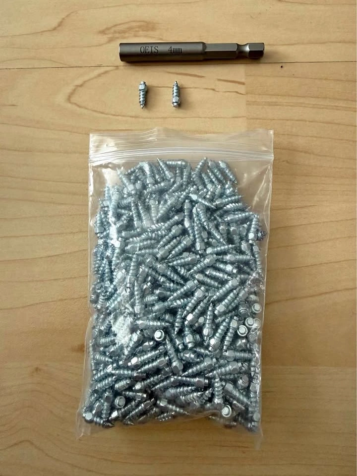 Huge winter traction kit – perfect for ice & snow! Full 600 pieces of 4x9mm silver snow tire spikes / anti-slip studs. Includes installation tool for easy screw-in use.