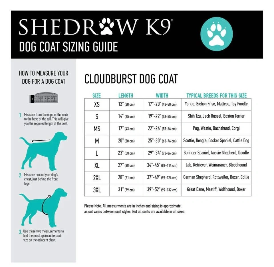 Shedrow Cloudburst dog rain coat - XL -NEW