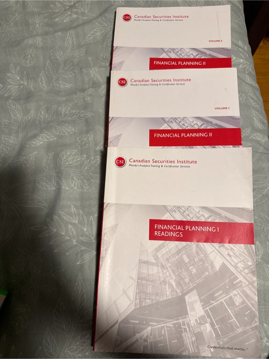 118Selling a set of CSI (Canadian Securities Institute) textbooks and readings! Included are Financial Planning I Readings, Financial Planning II Volume 1, and Financial Planning II Volume 2.