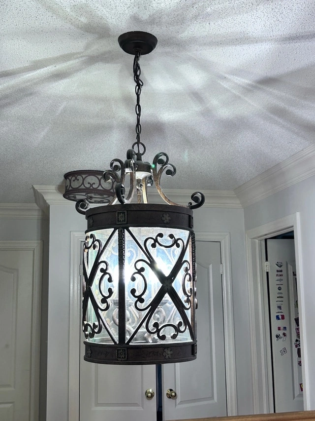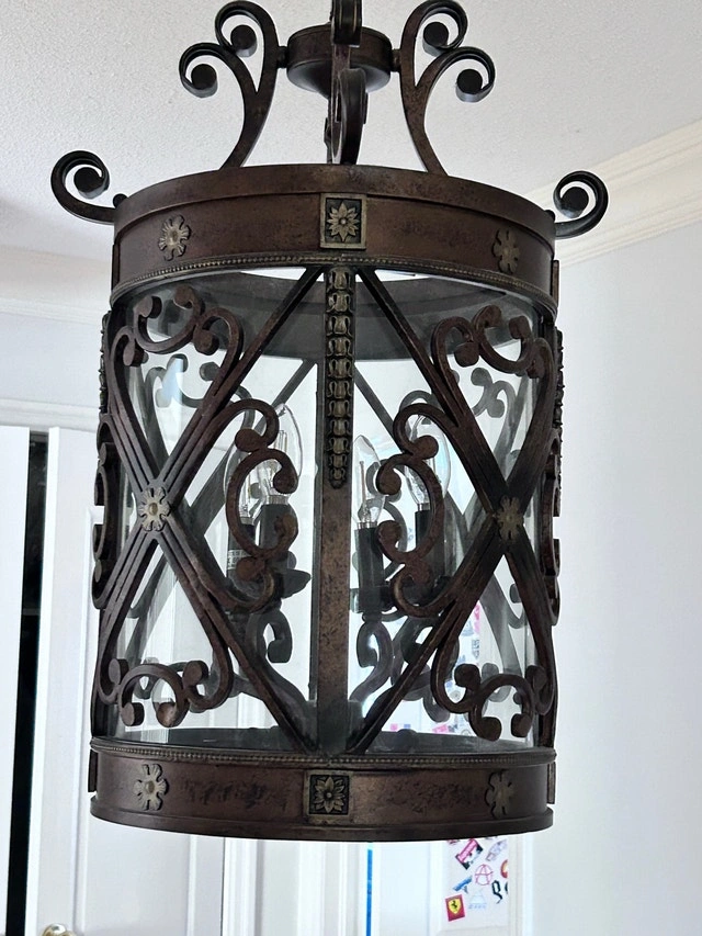Rustic chandelier in like new condition. Takes chandelier bulbs. Measures 13” in diameter and 24” high (not including the adjustable chain). Pick up only.