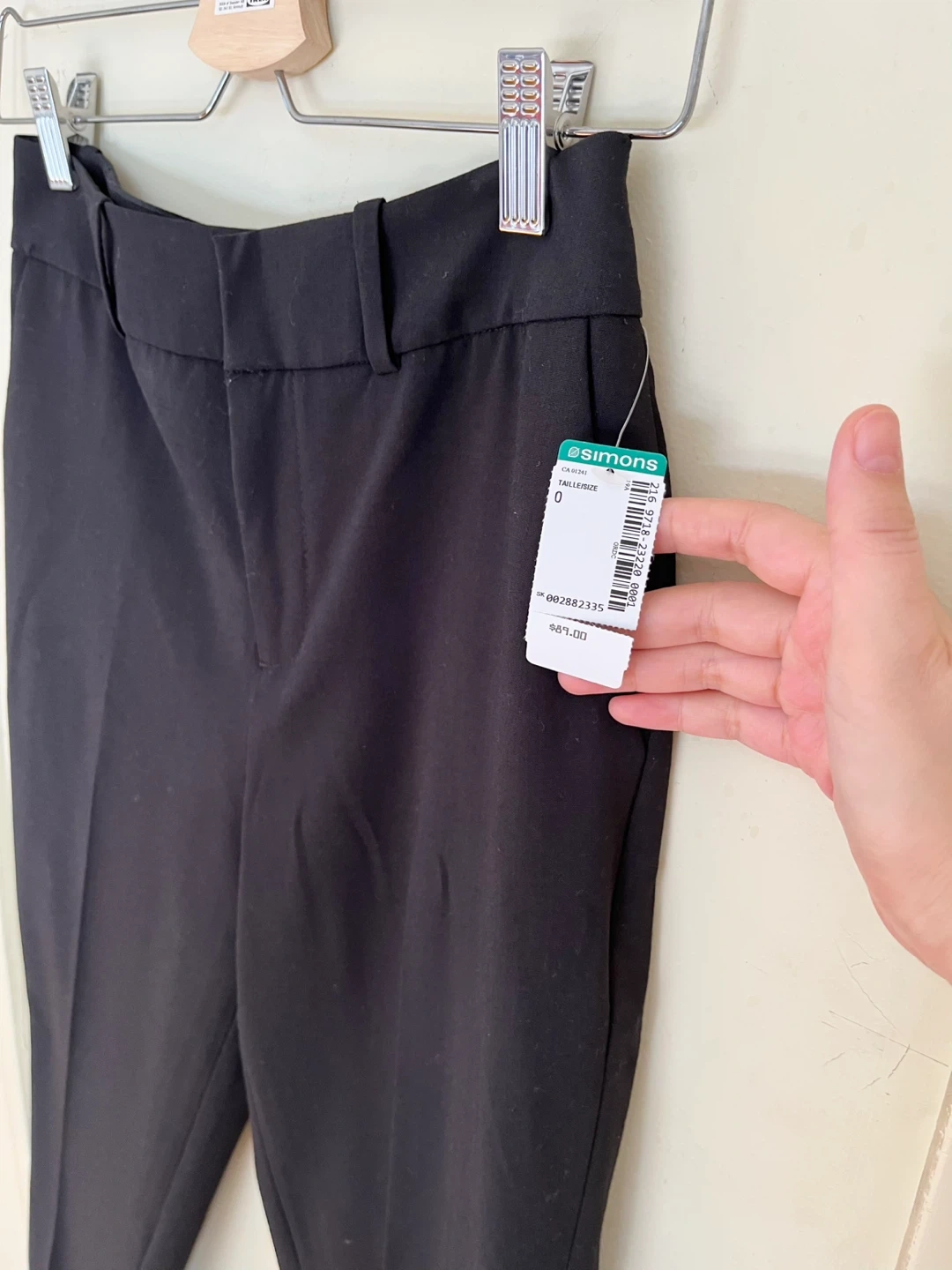 These black dress pants are from Contemporaine, exclusively from Simons. They're made with a blend of 63% polyester, 33% rayon, and 4% spandex. The pants are a size 0.