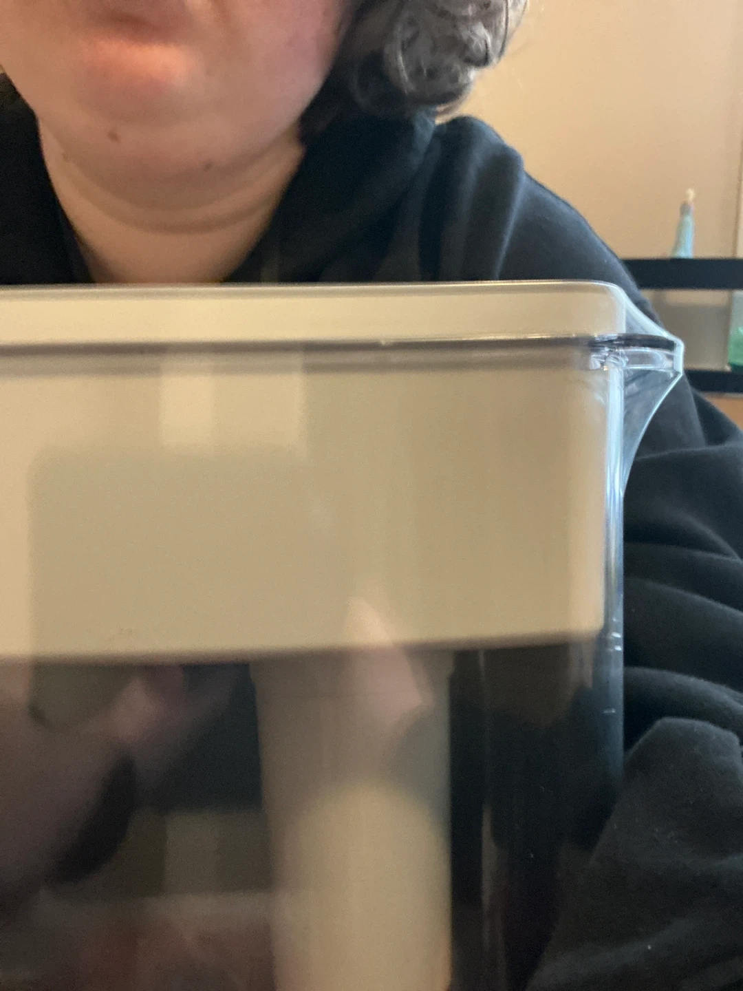 Return window has been closed, didn’t realize I needed it, never been opened A clear water filter pitcher with a white lid. It's designed to hold filtered water for easy pouring. Makes getting clean drinking water simple!