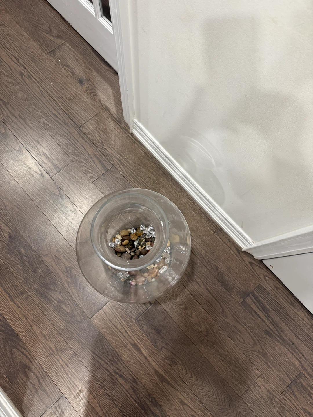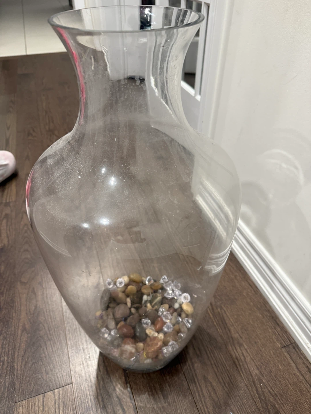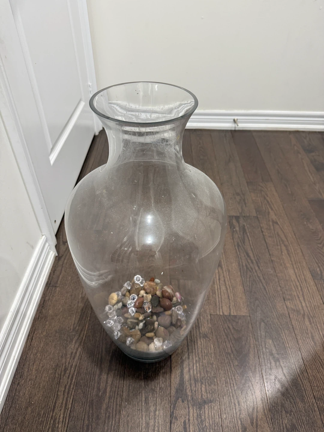 Large Clear Glass Vase with Decorative Stones
