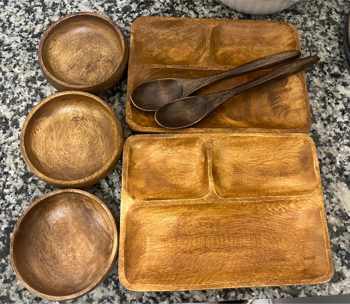 Wooden Serving Platter Set with Bowls and Spoons