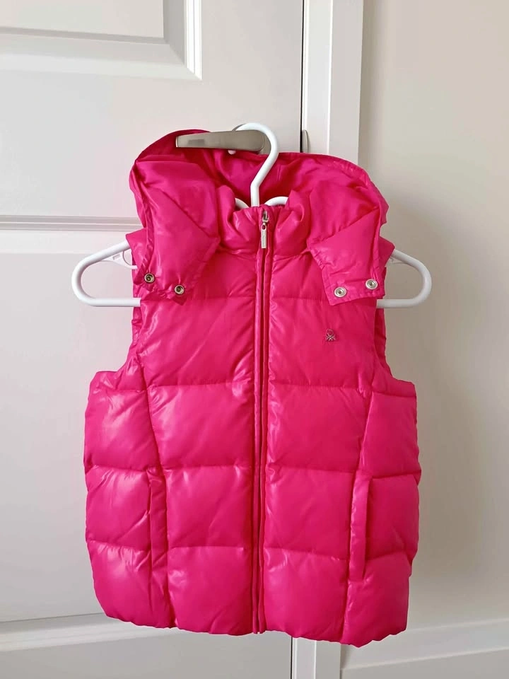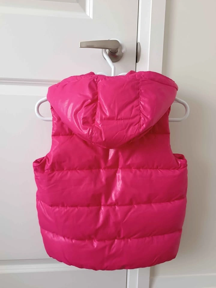 A beautiful fuchsia (bright pink) girls' vest coat from United Colors of Benetton. Amazing quality, perfect for spring. Has pockets and a hood. 10-11 years old. Polyester.